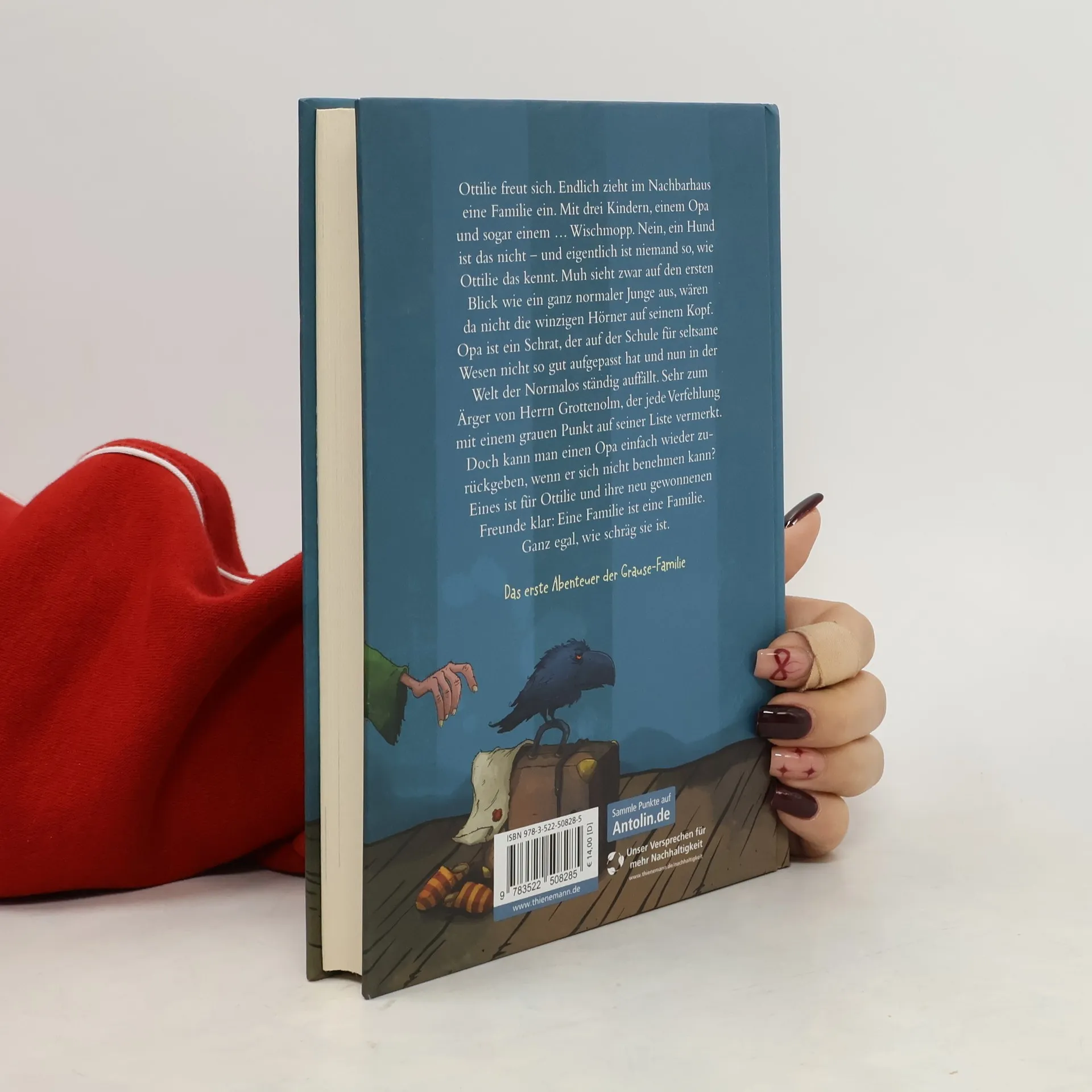 Humorvolle Familiengeschichte mit skurrilen Charakteren von Bestseller-Autorin Sabine Bohlmann Ottilie freut sich. Endlich zieht im Nachbarhaus eine Familie ein. Mit drei Kindern, einem Opa und sogar einem … Wischmopp. Nein, ein Hund ist das nicht – und eigentlich ist niemand so, wie Ottilie das kennt. Muh sieht zwar auf den ersten Blick wie ein ganz normaler Junge aus, wären da nicht die winzigen Hörner auf seinem Kopf. Opa ist ein Schrat, der auf der Schule für seltsame Wesen nicht so gut aufgepasst hat und nun in der Welt der Normalos ständig auffällt. Sehr zum Ärger von Herrn Grottenolm, der jede Verfehlung mit einem grauen Punkt auf seiner Liste vermerkt. Doch kann man einen Opa einfach wieder zurückgeben, wenn er sich nicht benehmen kann? Da sind sich die Grauses nicht so sicher. Nur eines ist klar für Ottilie und ihre neu gewonnen Freunde: Eine Familie ist eine Familie. Ganz egal, wie schräg sie ist.