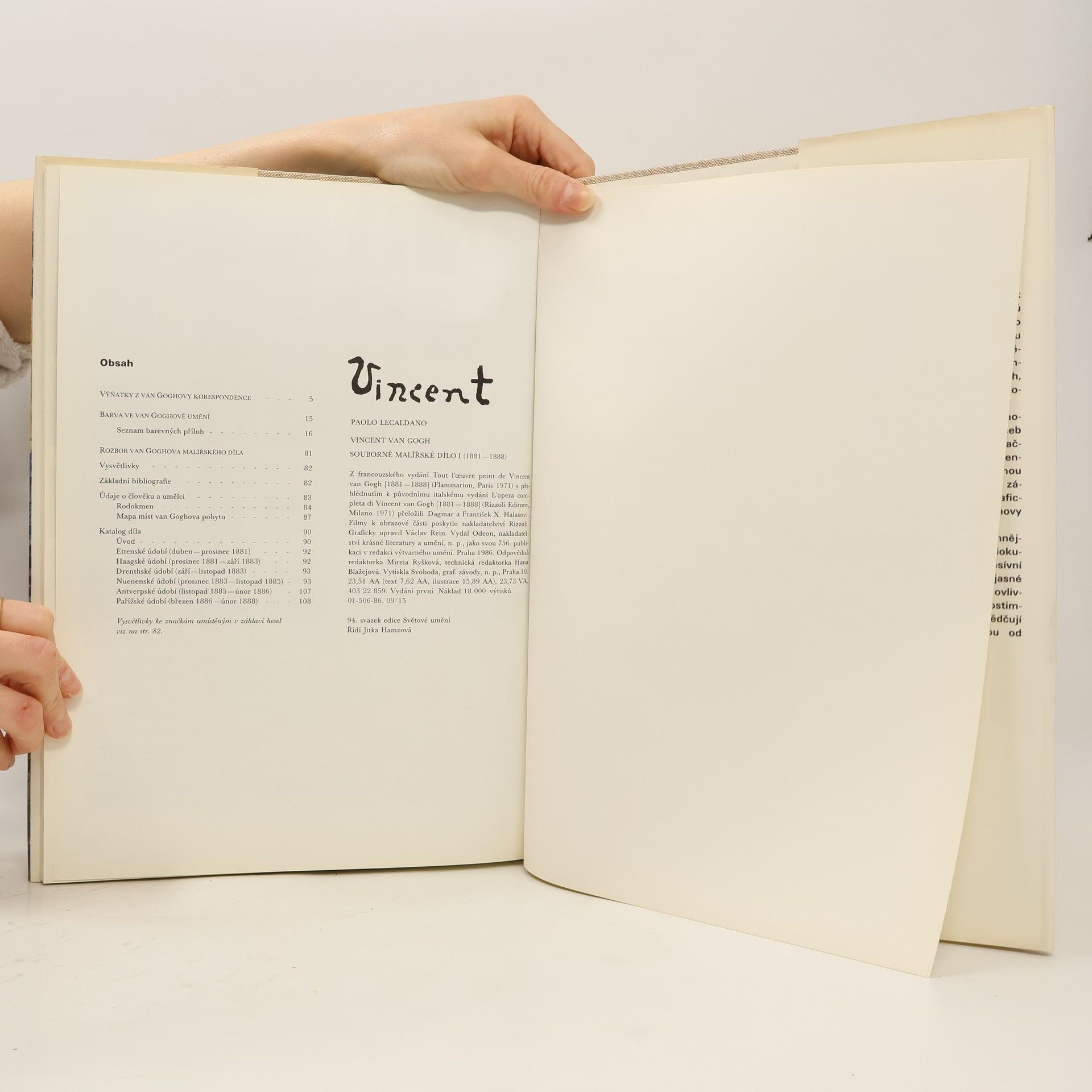 Souborné malířské dílo I (1881–1888). Ettenské, Haagské, Drenthské, Nuenenské, Antverpské, Pařížské údobí. Obsahuje výňatky z van Goghovy korespondence, seznam barevných příloh, základní bibliografii, katalog díla. Z francouzského vydání Tout l'œuvre peint de Vincent van Gogh [1881–1888] (Flammarion, Paris 1971) s přihlédnutím k původnímu italskému vydání L'opera completa di Vincent van Gogh [1881–1888] (Rizzoli Editore, Milano 1971) přeložili Dagmar a František X. Halasovi. Filmy k obrazové části poskytlo nakladatelství Rizzoli. Graficky upravil Václav Rein.