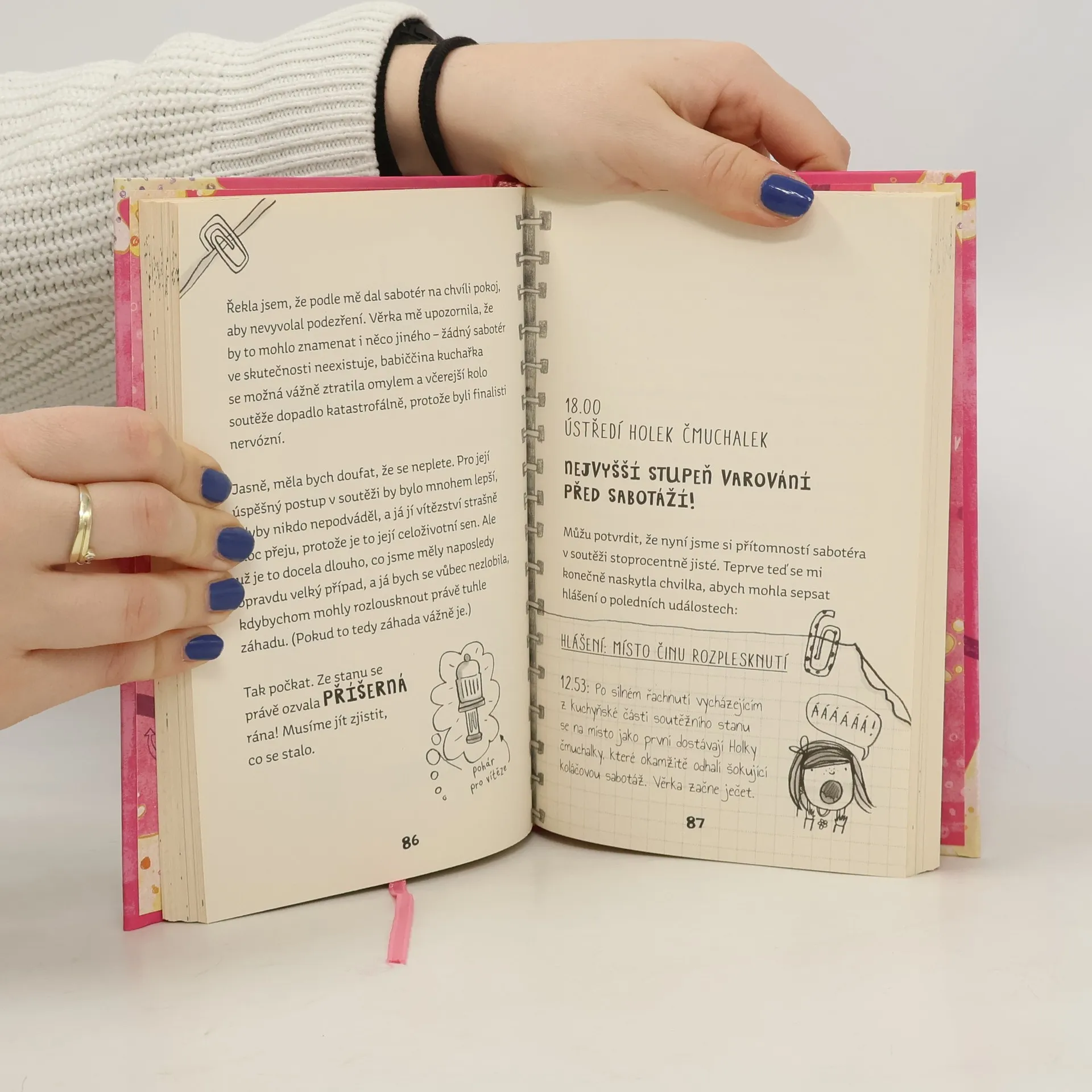 Majda Čmuchalová a její věrné parťačky z detektivní kanceláře Holky Čmuchalky se vrací, aby vyřešily další zapeklitý případ! Letošní kolo oblíbené pekařské soutěže se odehrává přímo u nich v Kalužíně, jenže místo pohodového týdne plného dortů a dortíků zadarmo čeká na mladé holčičí detektivy úkol vypátrat a odhalit cukrářského sabotéra, který se soutěž pokouší narušit. Podaří se sehranému týmu Holek Čmuchalek přesvědčit přísné porotce, že za připálenými koláčky a tajemnými nehodami nemusí stát jen pouhá nervozita finalistů? Zvládnou úspěšně rozlousknout i tenhle tvrdý detektivní oříšek?