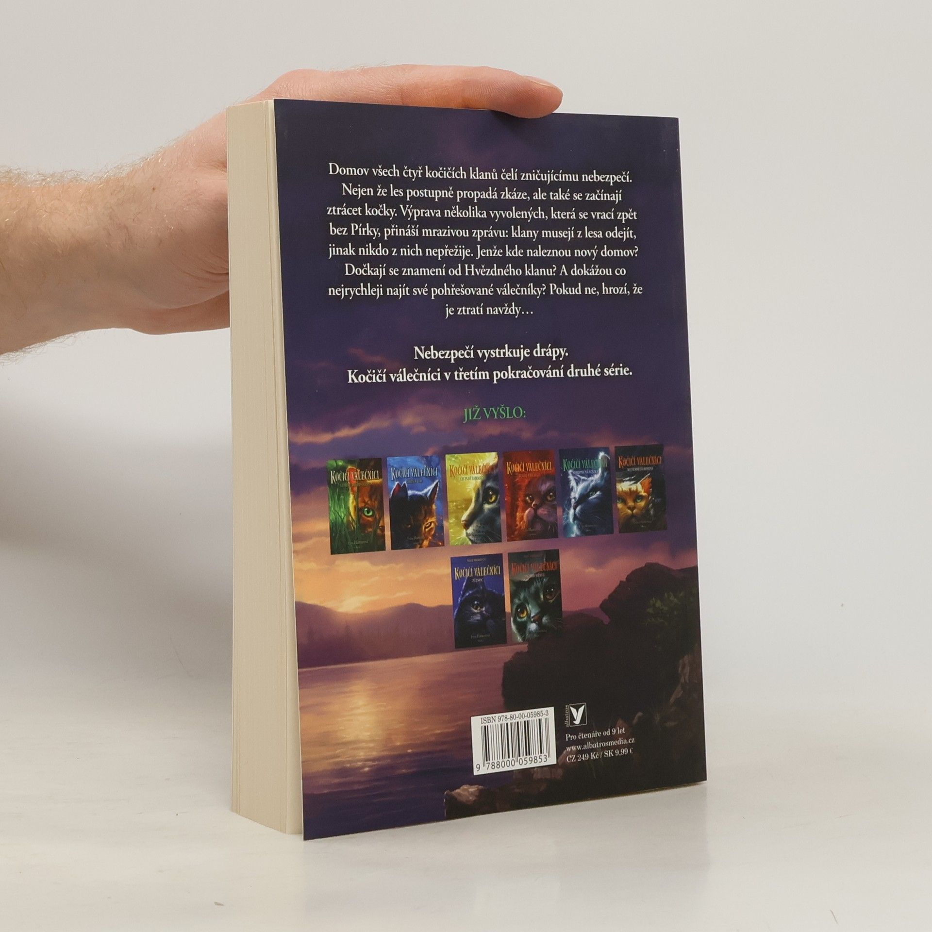Nebezpečí vystrkuje drápy. Kočičí válečníci v třetím pokračování druhé série. Domov všech čtyř kočičích klanů čelí zničujícímu nebezpečí. Nejen že les postupně propadá zkáze, ale také se začínají ztrácet kočky. Výprava několika vyvolených, která se vrací zpět bez Pírky, přináší mrazivou zprávu: klany musejí z lesa odejít, jinak nikdo z nich nepřežije. Jenže kde naleznou nový domov? Dočkají se znamení od Hvězdného klanu? A dokážou co nejrychleji najít své pohřešované válečníky? Pokud ne, hrozí, že je ztratí navždy…