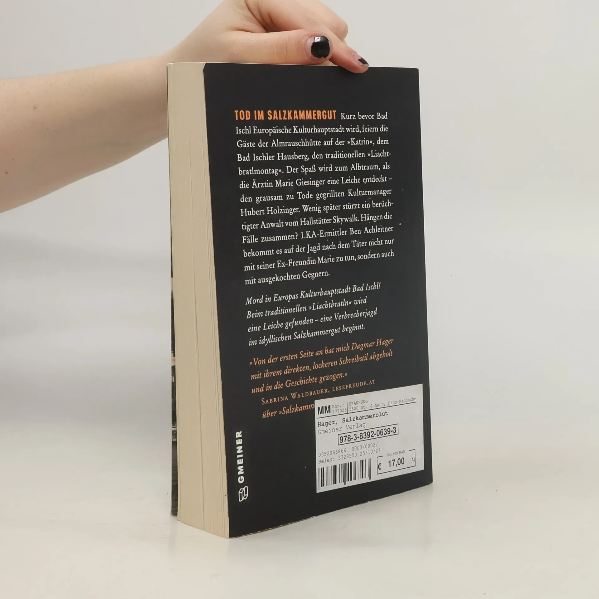 Kurz bevor Bad Ischl Europäische Kulturhauptstadt wird, feiern die Gäste der Almrauschhütte auf der »Katrin«, dem Bad Ischler Hausberg, den traditionellen »Liachtbratlmontag«. Der Spaß wird zum Albtraum, als die Ärztin Marie Giesinger eine Leiche entdeckt - den grausam zu Tode gegrillten Kulturmanager Hubert Holzinger. Wenig später stürzt ein berüchtigter Anwalt vom Hallstätter Skywalk. Hängen die Fälle zusammen? LKA-Ermittler Ben Achleitner bekommt es auf der Jagd nach dem Täter nicht nur mit seiner Ex-Freundin Marie zu tun, sondern auch mit ausgekochten Gegnern.