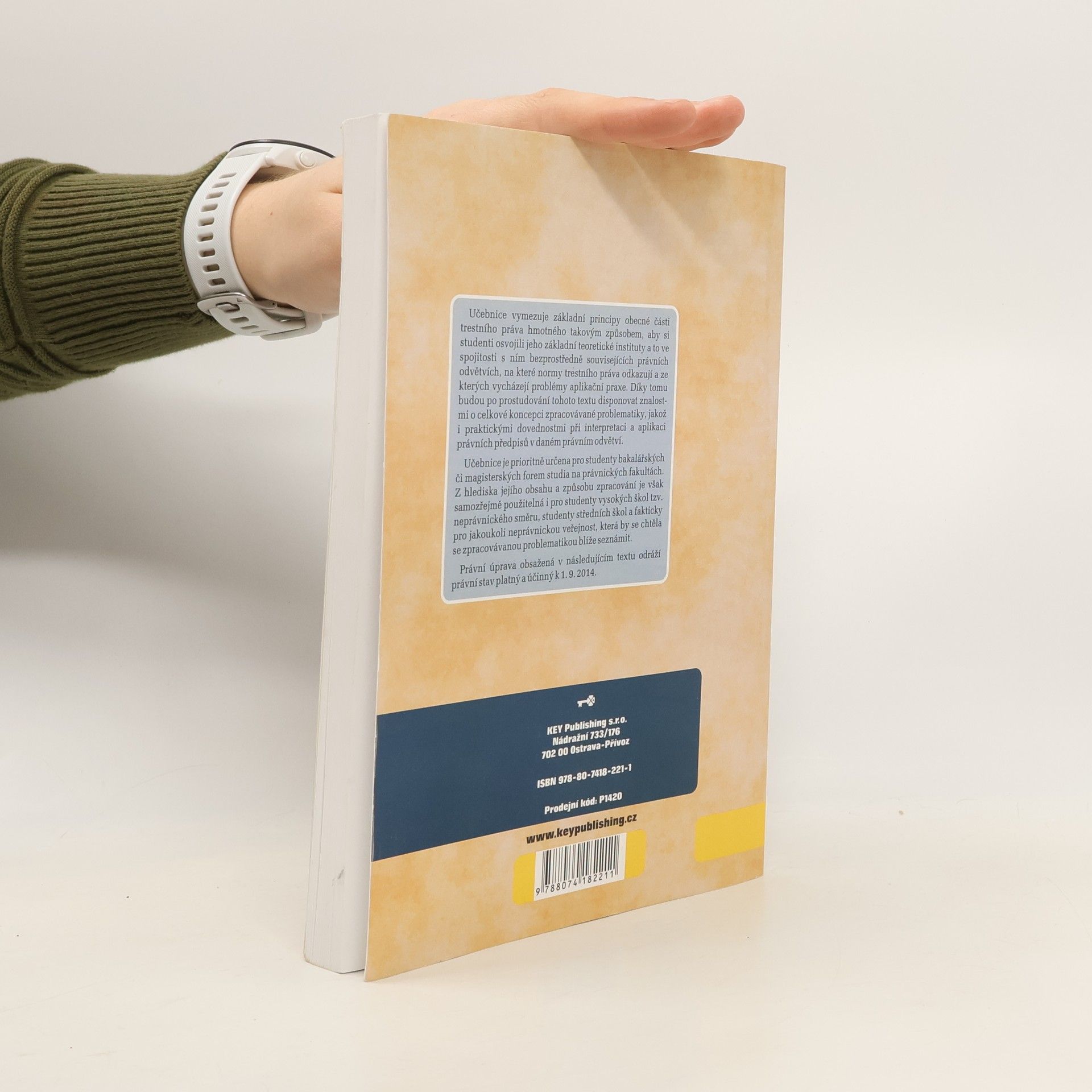 Učebnice vymezuje základní principy obecné části trestního práva hmotného takovým způsobem, aby si studenti osvojili jeho základní teoretické instituty a to ve spojitosti s ním bezprostředně souvisejících právních odvětvích, na které normy trestního práva odkazují a ze kterých vycházejí problémy aplikační praxe. Díky tomu budou po prostudování tohoto textu disponovat znalostmi o celkové koncepci zpracovávané problematiky, jakož i praktickými dovednostmi při interpretaci a aplikaci právních předpisů v daném právním odvětví. Učebnice je prioritně určena pro studenty bakalářských či magisterských forem studia na právnických fakultách. Z hlediska jejího obsahu a způsobu zpracování je však samozřejmě použitelná i pro studenty vysokých škol tzv. neprávnického směru, studenty středních škol a fakticky pro jakoukoli neprávnickou veřejnost, která by se chtěla se zpracovávanou problematikou blíže seznámit. Právní úprava obsažená v následujícím textu odráží právní stav platný a účinný k 1. 9. 2014.