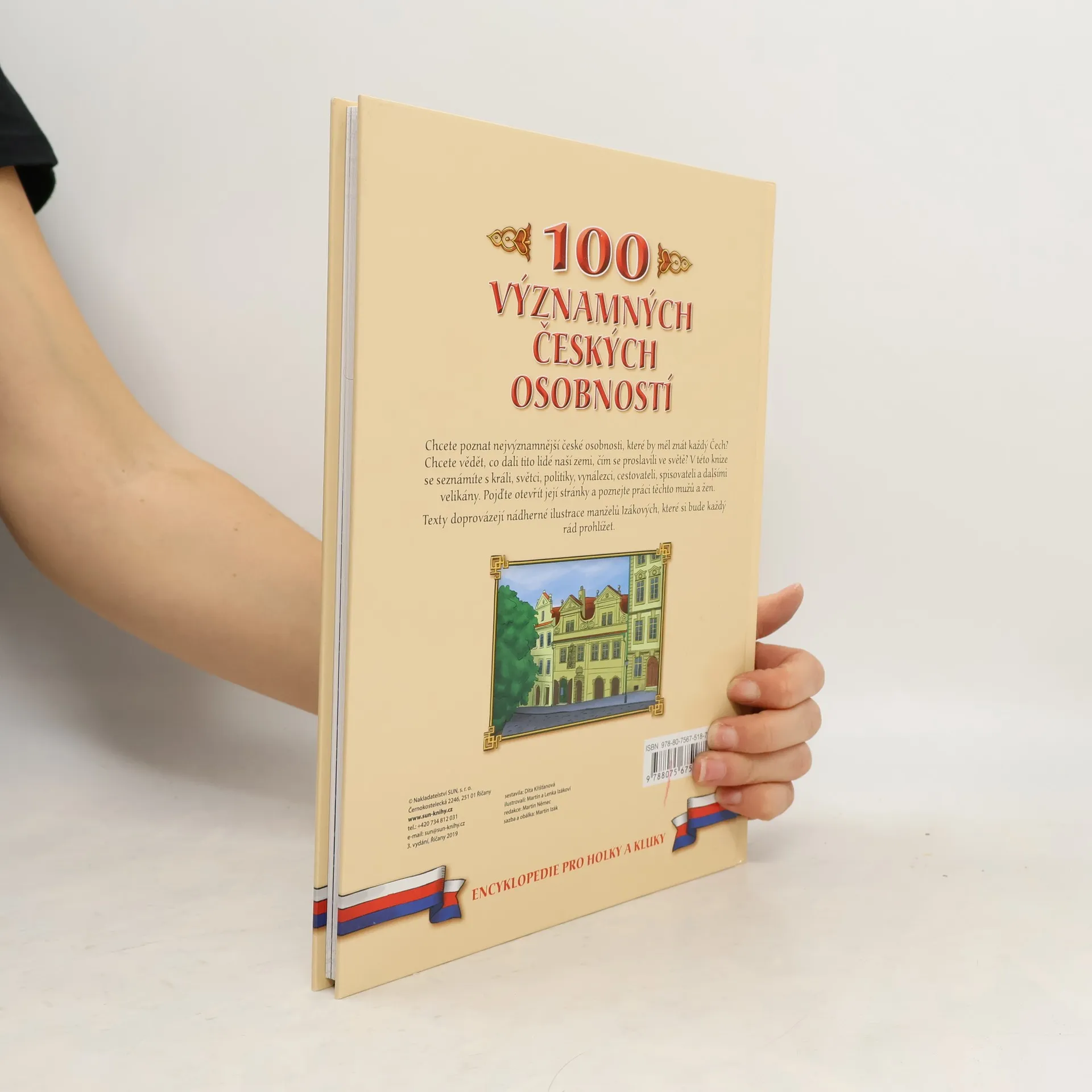 Chcete poznat nejvýznamnější české osobnosti? Chcete vědět, co dali tito lidé naší zemi a čím se proslavili ve světě? Výpravná, tematicky členěná a bohatě ilustrovaná kniha přibližuje našim malým čtenářům stovku významných mužů a žen, kteří proslavili naši zemi a zapsali se do její historie. Vládci, stavitelé, vědci, malíři, sochaři, filmoví režiséři - ti všichni dali naší zemi své srdce a zanechali nám tak nesmrtelné dědictví. Pojďme nahlédnout do jejich životů a inspirovat se jejich činy! Texty doprovázejí nádherné ilustrace manželů Izákových.