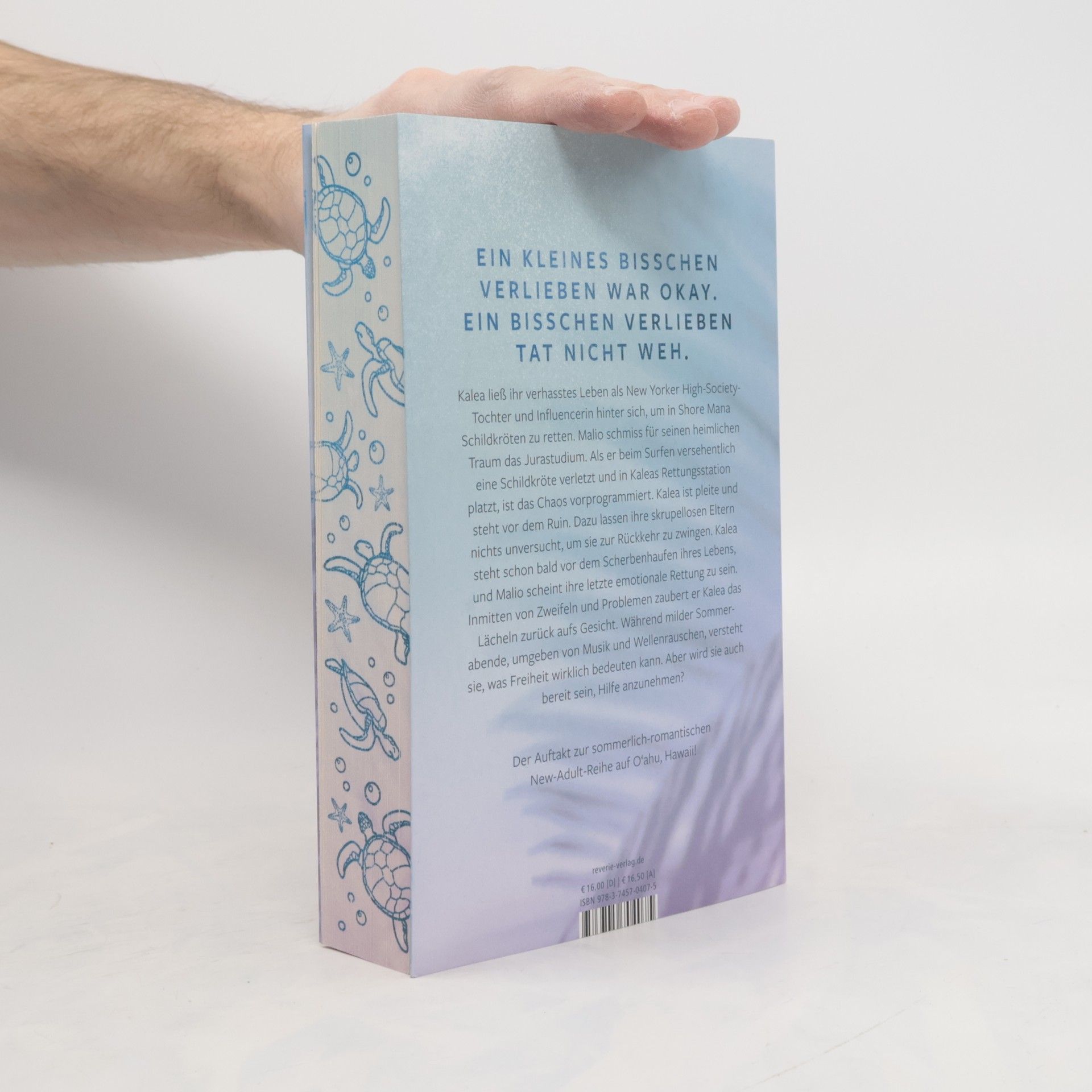 Ein kleines bisschen Verlieben war okay. Ein bisschen Verlieben tat nicht weh Kalea ließ ihr verhasstes Leben als New Yorker High Society Tochter und Influencerin hinter sich, um in Shore Mana Schildkröten zu retten. Malio schmiss für seinen heimlichen Traum das Jurastudium. Als er beim Surfen versehentlich eine Schildkröte verletzt und in Kaleas Rettungsstation platzt, ist das Chaos vorprogrammiert. Kalea ist pleite und steht vor dem Ruin. Dazu lassen ihre skrupellosen Eltern nichts unversucht, um sie zur Rückkehr zu zwingen. Kalea steht schon bald vor dem Scherbenhaufen ihres Lebens und Malio scheint ihre letzte, emotionale Rettung zu sein. Inmitten von Zweifeln und Problemen zaubert er Kalea das Lächeln zurück aufs Gesicht. Während milder Sommerabende umgeben von Musik und Wellenrauschen versteht sie, was Freiheit wirklich bedeuten kann. Aber wird sie auch bereit sein, Hilfe anzunehmen?
