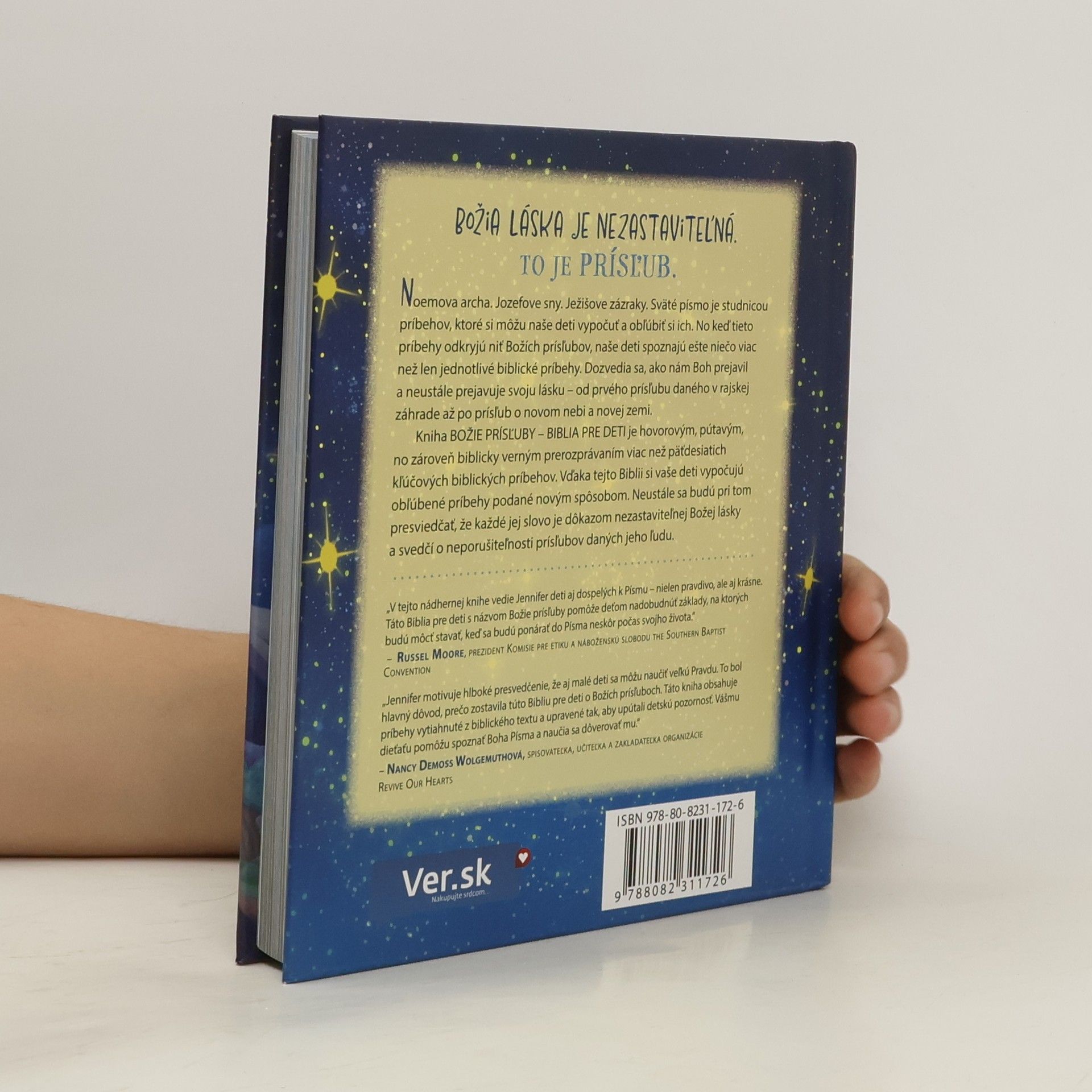 Božia láska je nezastaviteľná, čo je jasným znakom jeho vernosti a neustálej náklonnosti voči nám. Môžeme sa naňho spoľahnúť s istotou, že nás nesklame. Kniha odhaľuje mnohé prísľuby, ktoré Boh dal človeku, a nezastaví sa, kým ich všetky nenaplní. Rôzne biblické príbehy, ako Noemova archa, Jozefove sny či Ježišove zázraky, sú prepojené a ponúkajú deťom možnosť spoznať Božiu lásku od prvého prísľubu v rajskej záhrade až po prísľub o novom nebi a novej zemi. Tento text je pútavým a biblicky verným prerozprávaním viac než päťdesiatich kľúčových biblických príbehov, ktoré prepája niť Božích prísľubov. Deti si vypočujú obľúbené príbehy podané novým spôsobom, pričom sa presvedčia, že každé slovo je dôkazom Božej lásky a neporušiteľnosti prísľubov. V tejto nádhernej knihe vedie autorka deti a dospelých k Písmu pravdivo a krásne. Pomôže deťom nadobudnúť základy, na ktorých budú môcť stavať neskôr počas svojho života. Autorka motivuje presvedčenie, že aj malé deti sa môžu naučiť veľkú Pravdu. Príbehy sú upravené tak, aby upútali detskú pozornosť a pomohli im spoznať Boha a dôverovať mu.