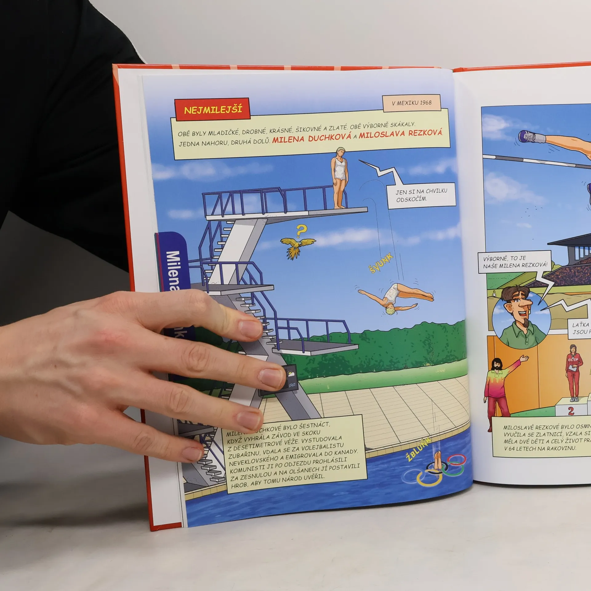 Víte, kdo pro Československo získal první zlatou medaili na olympiádě? V dávném roce 1924 to byl vyučený řezník, který šplhal po laně. Dokážete si vybavit i jiné obojživelníky než Ester Ledeckou? Proč Češi dokážou tak obratně mrskat oštěpem nebo pádlovat v divokých peřejích? Možná se budete divit, ale všechny odpovědi se dají nakreslit. Proto vznikl originální komiks 33 olympijských nej. Neotřelým a notně barevným způsobem představuje příběhy našich slavných olympioniků.
