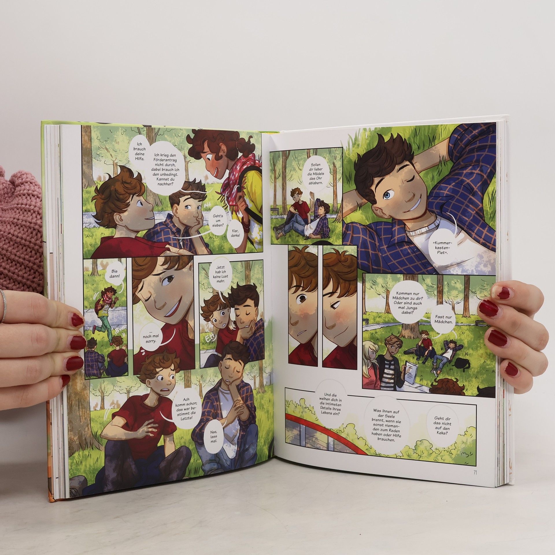 Die erste Liebe ist immer kompliziert Ein neues Schuljahr im Internat Tannenberg beginnt. Bei der Feier am ersten Schultag bekommen die Zehntklässler die neuen Siebtklässler als Patenschüler zugeteilt. Als Piet seinen Schützling Tim sieht, fällt er aus allen Wolken, denn er erinnert ihn an Lukas, seine erste Liebe. Und mit einem Mal sind all die verwirrenden Gefühle für Lukas von damals wieder da. Dabei ist Piet doch eigentlich in einer glücklichen Beziehung mit Thea. Eine Graphic-Novel-Serie, die zeigt, wie es wirklich ist, verliebt zu sein Ein Internat in einer Kleinstadt: Hier, wo man (fast) nie einem Erwachsenen begegnet, erleben Piet und seine Freunde, wie facettenreich das eigene Gefühlschaos sein kann. Voller liebenswerter Charaktere, wunderschöner Liebesgeschichten und authentischer Probleme