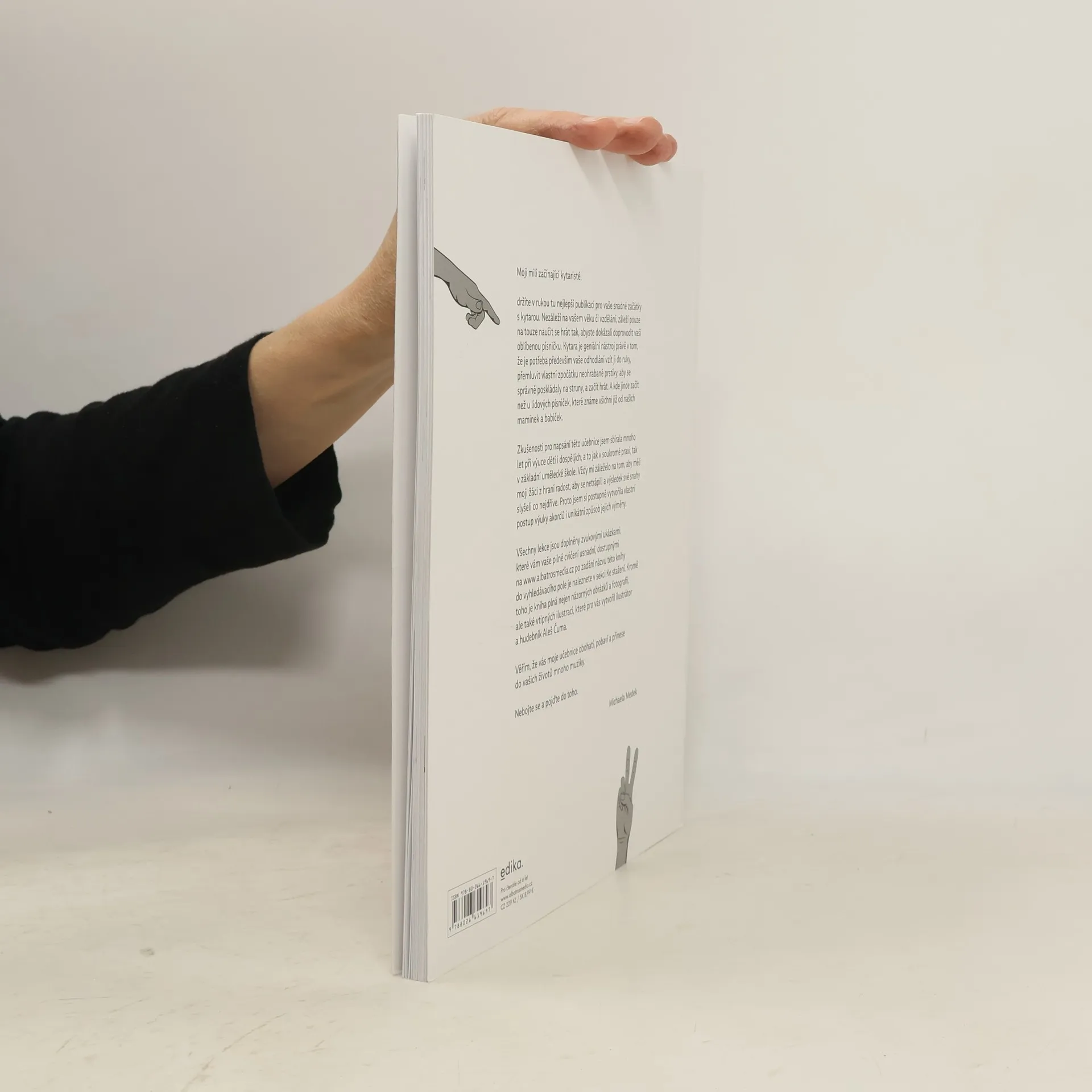 Kniha, která vám usnadní začátky s kytarou. Nezáleží na vašem věku či vzdělání, záleží pouze na touze naučit se hrát tak, abyste dokázali doprovodit vaši oblíbenou písničku. Kytara je geniální nástroj právě v tom,že je potřeba především vaše odhodlání vzít ji do ruky, přemluvit vlastní zpočátku neohrabané prstíky, aby se správně poskládaly na struny, a začít hrát. V knize najdete nahrávky, které si stáhnete v sekci Ke stažení.