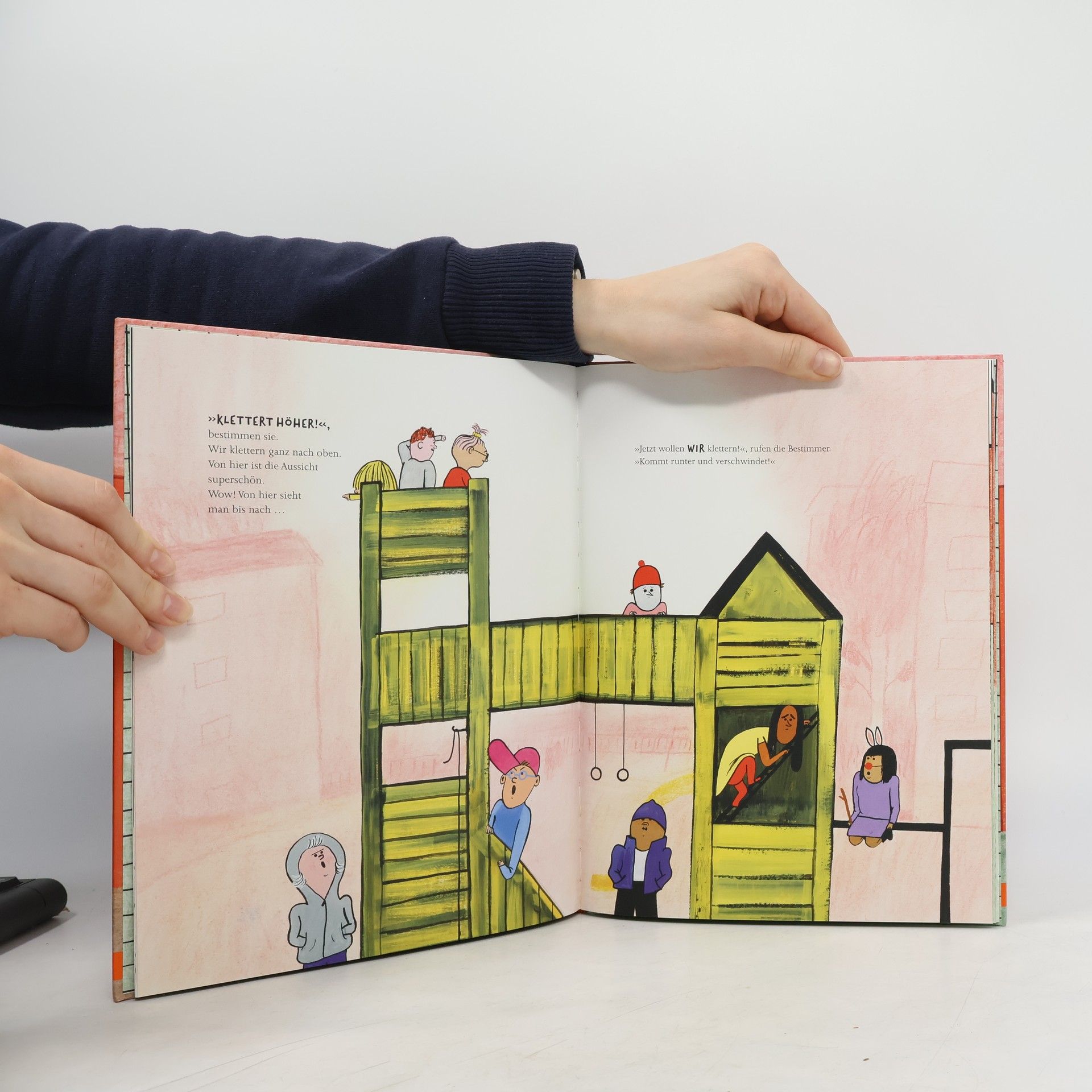 »Die Bestimmer, das sind die, die bestimmen. Wie immer. Und wir, wir sind die, die gehen sollen. Auch wie immer.« Das machen die Freunde dann auch, aber die Gruppe der Bestimmer folgt ihnen nach – und vertreibt sie immer wieder. Bis die Kinder ihre Stimme finden und endlich »Nein« sagen. Und da wendet sich das Blatt. Mit prägnanten Dialogen und lebensfrohen Bildern erzählt dieses Bilderbuch von Macht und gewaltfreiem Widerstand auf dem Spielplatz.