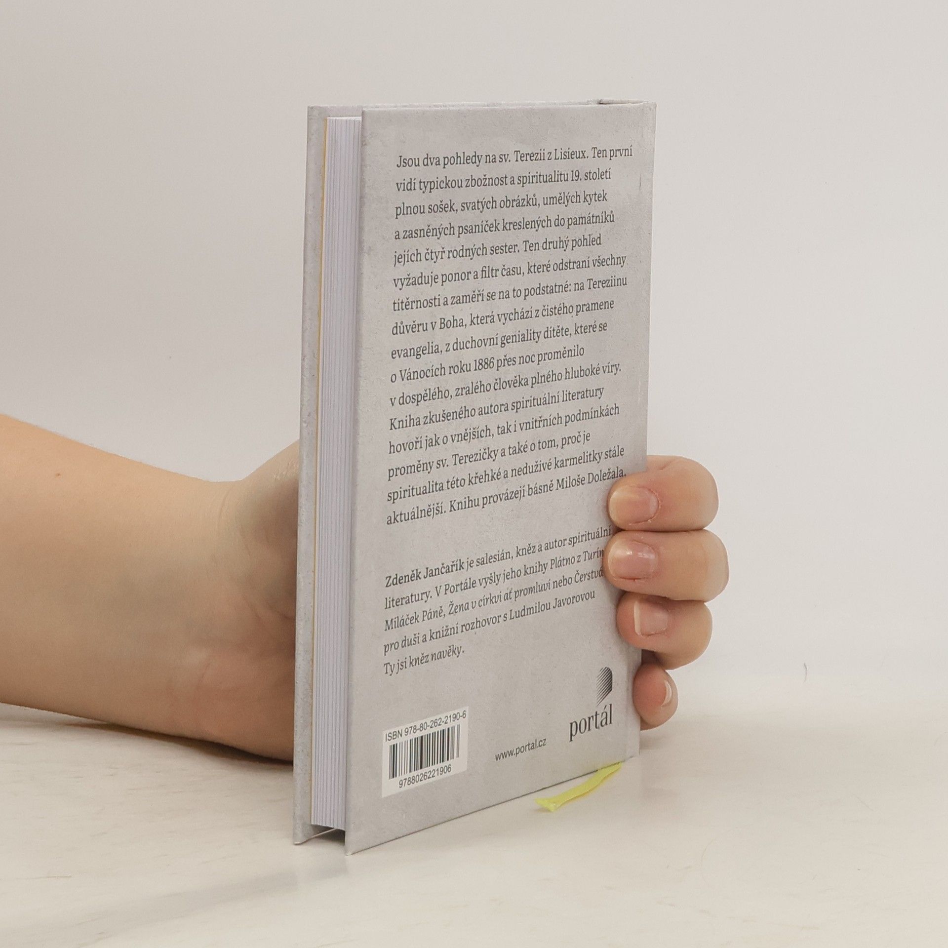 Jsou dva pohledy na sv. Terezii z Lisieux. Ten první vidí typickou zbožnost a spiritualitu 19. století, mnohdy připomínající kabinet katolických kuriozit, plnou sošek, svatých obrázků, umělých kytek a zasněných psaníček kreslených do památníků jejích čtyř rodných sester. Ten druhý pohled vyžaduje ponor a filtr času, které odstraní všechny titěrnosti a zaměří se na to podstatné: na Tereziinu důvěru v Boha, která vychází z čistého pramene evangelia, z duchovní geniality dítěte, které se o Vánocích 1886 přes noc stalo dospělou, zralou křesťankou. Kniha zkušeného autora spirituální literatury hovoří jak o vnějších, tak i vnitřních podmínkách její proměny a také o tom, proč je spiritualita této křehké a neduživé karmelitky, jež jako řeholnice žila skryta v kontemplativním klášteře v Lisieux pouhých devět let, stále aktuálnější. Je v ní řeč o růžích, které se už 150 let od jejího narození rozvíjejí jedna po druhé, a o bezprostřednosti důvěry, jež je něčím mnohem víc než víra. Knihu provázejí básně Miloše Doležala.
