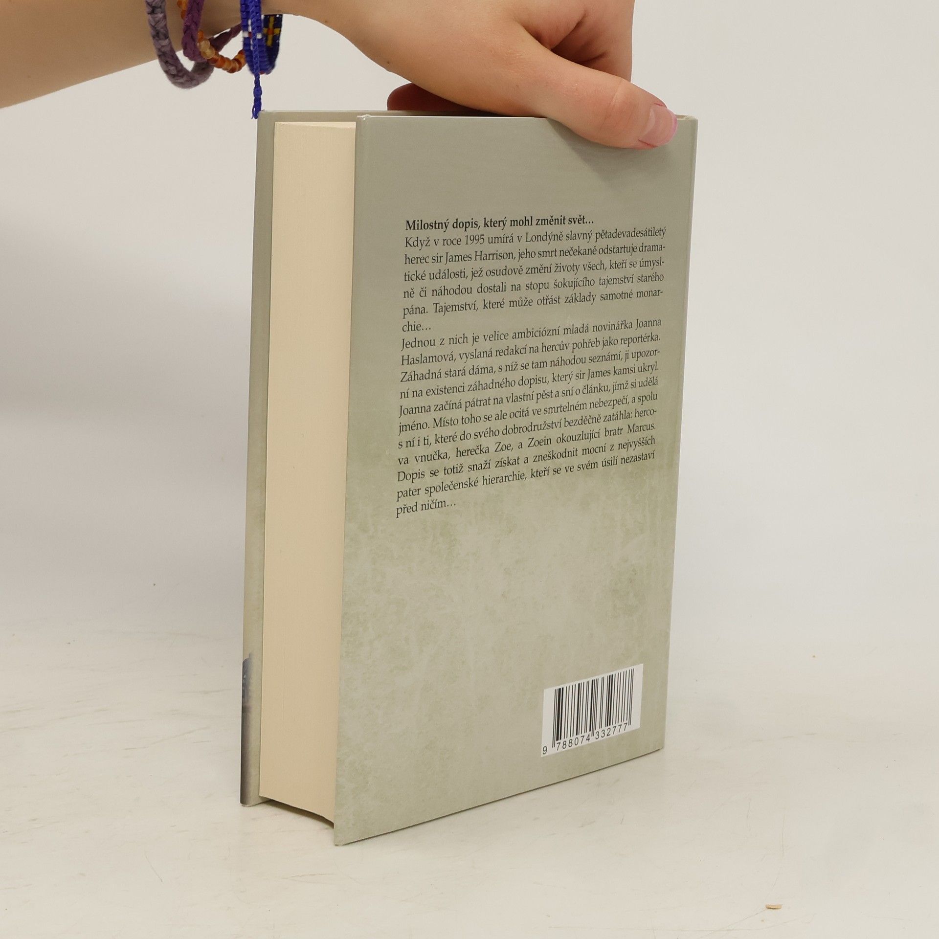 Milostný dopis, který mohl změnit svět… Když v roce 1995 umírá v Londýně slavný pětadevadesátiletý herec sir James Harrison, jeho smrt nečekaně odstartuje dramatické události, jež osudově změní životy všech, kteří se úmyslně či náhodou dostali na stopu šokujícího tajemství starého pána. Tajemství, které může otřást základy samotné monarchie… Jednou z nich je velice ambiciózní mladá novinářka Joanna Haslamová, vyslaná redakcí na hercův pohřeb jako reportérka. Záhadná stará dáma, s níž se tam náhodou seznámí, ji upozorní na existenci záhadného dopisu, který sir James kamsi ukryl. Joanna začíná pátrat na vlastní pěst a sní o článku, jímž si udělá jméno. Místo toho se ale ocitá ve smrtelném nebezpečí, a spolu s ní i ti, které do svého dobrodružství bezděčně zatáhla: hercova vnučka, herečka Zoe, a Zoein okouzlující bratr Marcus. Dopis se totiž snaží získat a zneškodnit mocní z nejvyšších pater společenské hierarchie, kteří se ve svém úsilí nezastaví před ničím…