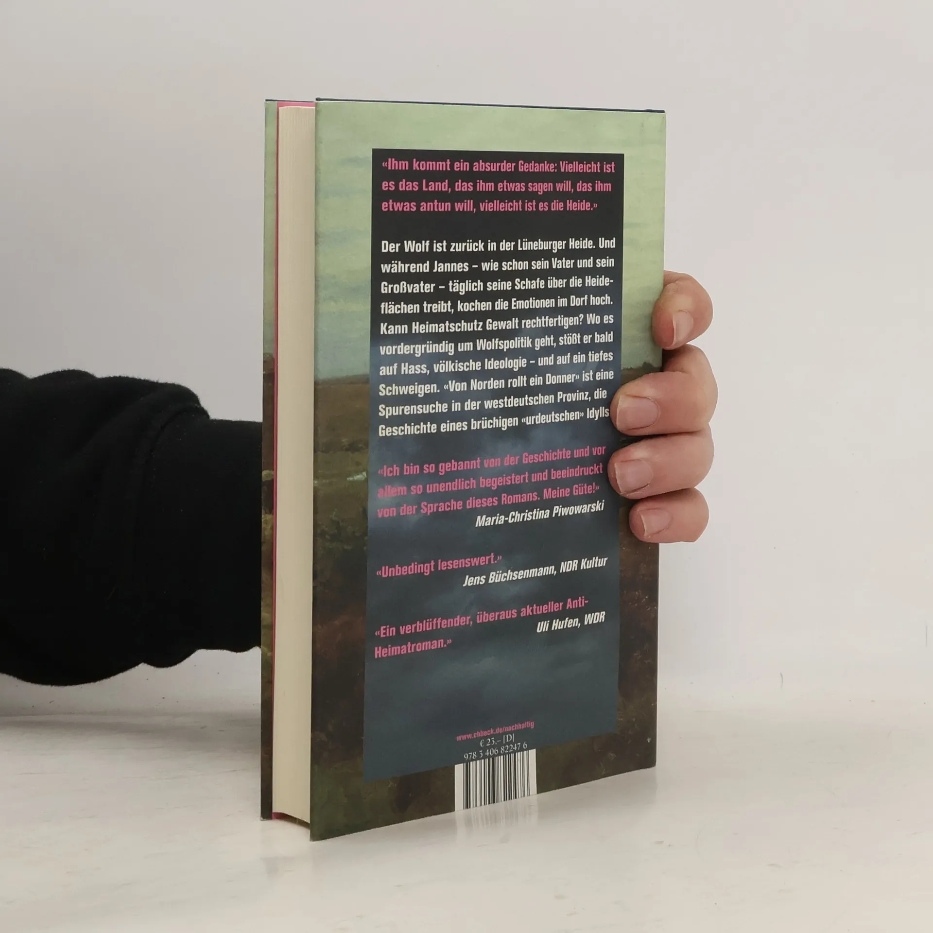 Täglich treiben der 19-jährige Jannes und seine Familie die Schafe über die Flächen der Lüneburger Heide. Doch es herrscht eine gärende Unruhe in der Gegend, der Wolf ist zurück. Es mehren sich Schafsrisse und mit ihnen Konflikte im Dorf, die schnell politisch werden.Kann Heimatschutz Gewalt rechtfertigen? Während sich die Situation zuspitzt und in Selbstjustiz der Bevölkerung zu eskalieren droht, flüchtet Jannes zu seinen Schafen in die Heide. Bis er dort immer wieder auf eine merkwürdige Frau trifft. Er beginnt, ihr zu folgen, und kommt Schritt für Schritt hinter die Geheimnisse dieser vermeintlichen Sehnsuchtslandschaft, stößt auf Brutalität, völkische Ideologie – und auf ein tiefes Schweigen. Markus Thielemann begibt sich mit seinem fesselnden Anti-Heimatroman tief hinein in die Abgründe eines „urdeutschen“ Idylls.