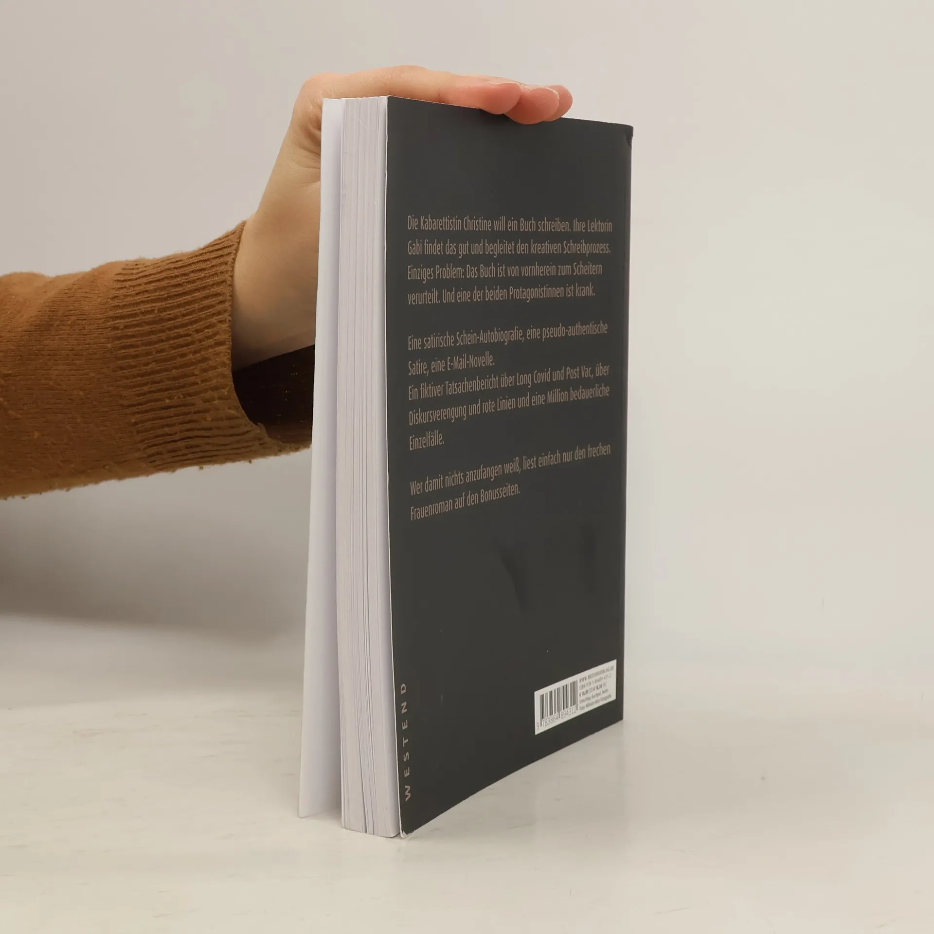 Die Kabarettistin Christine will ein Buch schreiben. Ihre Lektorin Gabi findet das gut und begleitet den kreativen Schreibprozess. Einziges Problem: Das Buch ist von vornherein zum Scheitern verurteilt. Und eine der beiden Protagonistinnen ist krank. Eine satirische Schein-Autobiografie. Eine pseudo-authentische Satire. Eine E-Mail-Novelle. Ein fiktiver Tatsachenbericht über Long Covid und Post Vac, über Diskursverengung und rote Linien und eine Million bedauerliche Einzelfälle. Wer damit nichts anzufangen weiß, liest einfach nur den frechen Frauenroman auf den Bonusseiten.