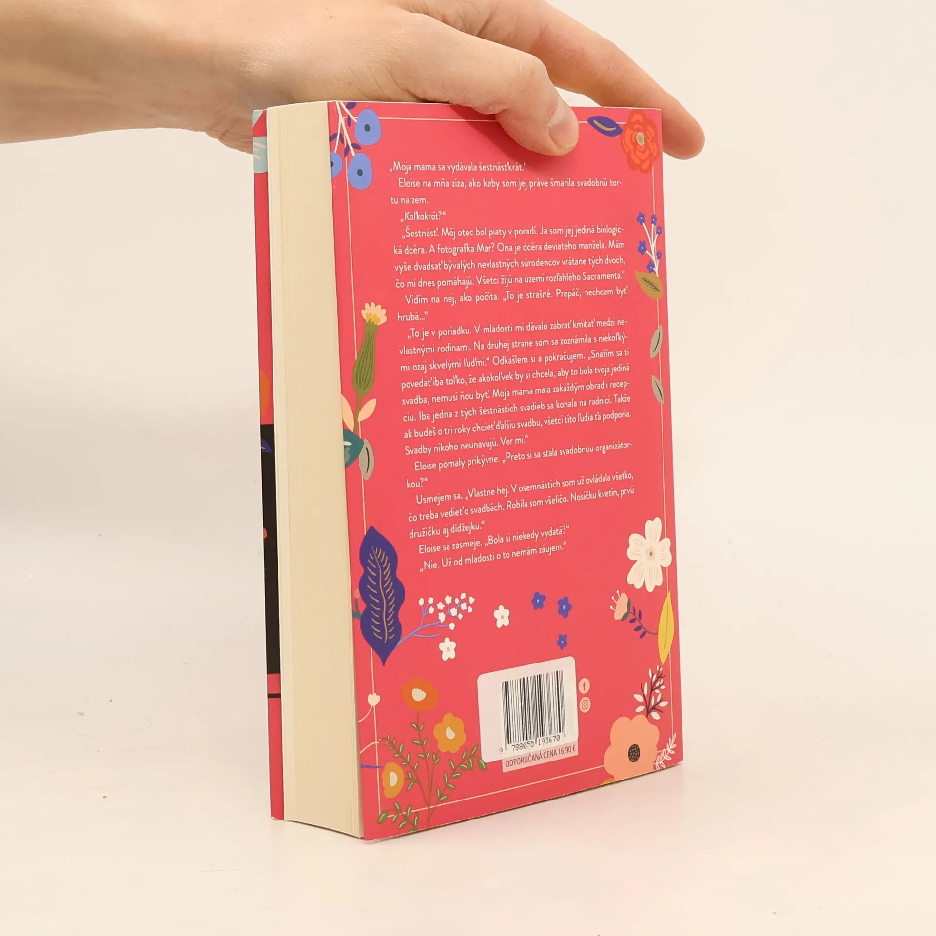 Ona ho odmietla, on na ňu nedokáže zabudnúť Ama Torresová miluje svoju prácu. Ako plánovačka svadieb vedie vlastnú malú firmu a snaží sa preraziť v biznise, v ktorom sa cíti ako ryba vo vode. Paradoxne, manželstvo nie je nič pre ňu. Len ten jeden perfektný, dokonalý deň, ktorý nemôže nič pokaziť. Alebo predsa? Keď si Amu najmú, aby naplánovala celebritnú svadbu roka, môže ísť presne o tú príležitosť, ktorá jej pomôže dostať sa na výslnie. Má to však háčik. Musí spolupracovať so svojím ex. Elliot z duše neznáša kvety. Na tom by nebolo nič zvláštne, keby neviedol rodinné kvetinárstvo. Isté ponuky sa však neodmietajú, ani keď to znamená pracovať so ženou, ktorá mu kedysi zlomila srdce. Už sú to roky, ale stará iskra nevyhasla. Situácii nepomáha ani to, že sa ich svadobný pár rozhodne dať dokopy a svadobné prípravy dokumentuje filmový štáb. Ama a Elliot môžu prísť o viac než len o dobré meno a živobytie. Mohli by opäť prepadnúť citom a vstúpiť do tej istej rieky. A to ani jeden z nich nechce. Z anglického originálu Forget Me Not (Forever, an imprint of Grand Central Publishing, name and logo are trademarks of Hachette Book Group, Inc., New York 2023) preložila Petra Malúchová.