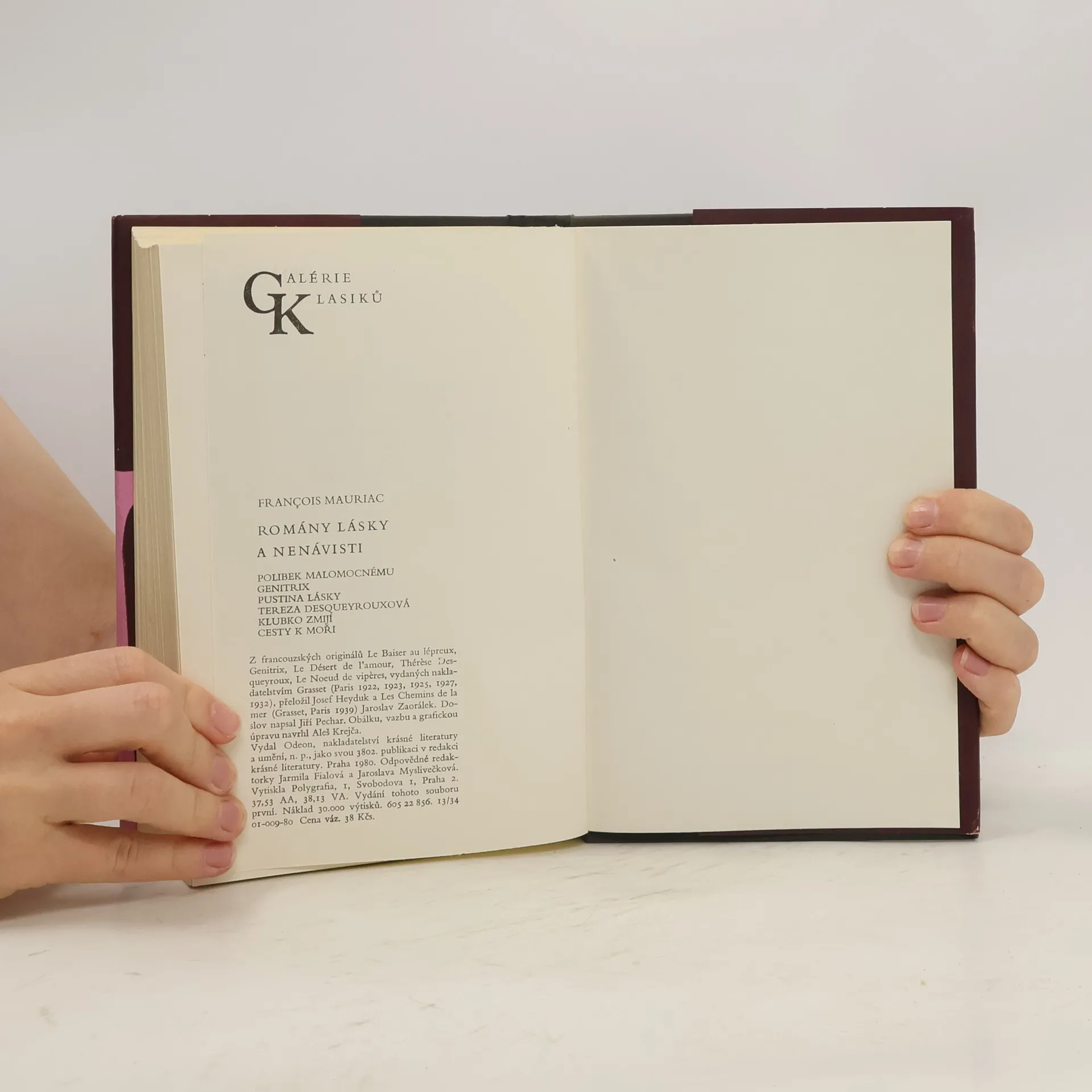 Soubor děl Francoise Mauriaca obsahuje tyto prózy: Polibek malomocnému; Genitrix; Pustina lásky; Tereza Desqueyrouxová; Klubko zmijí; Cesty k moři