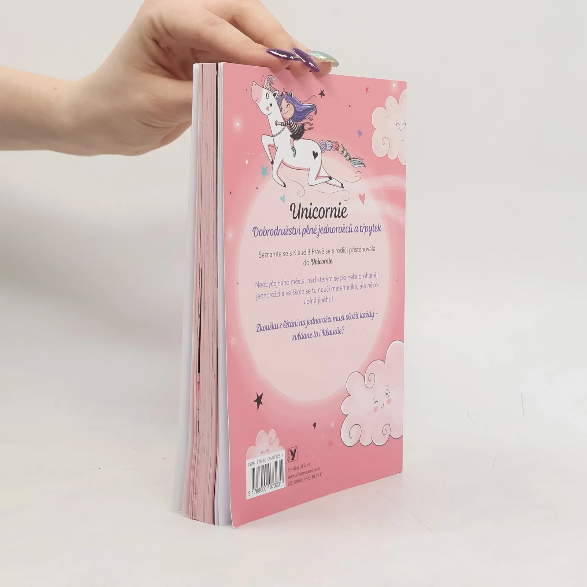 Seznamte se s Klaudií! Právě se s rodiči přistěhovala do Unicornie. Do neobyčejného města, nad kterým se po nebi prohánějí jednorožci a ve škole se tu neučí matematika, ale něco úplně jiného! Jenže to je zároveň ta potíž... Zkoušku z létání na jednorožci musí složit každý student - dokáže to i Klaudie?