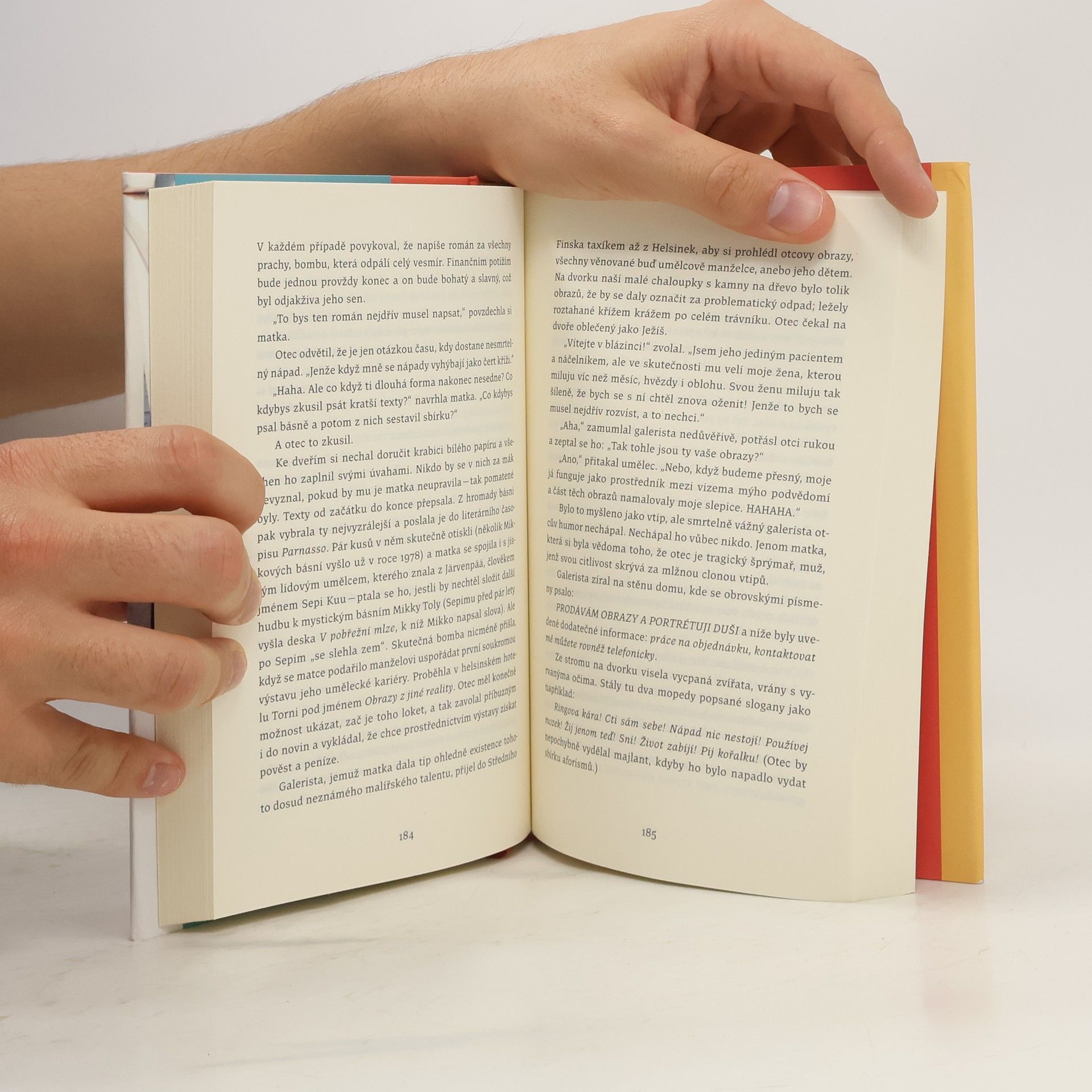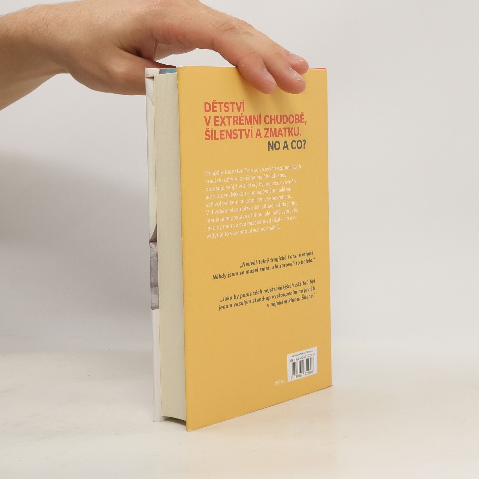 „Na celé širé planetě se nenarodil svéráznější jedinec než můj otec.“ Joonatan obdrží naléhavý telefonát: babička je v posledním tažení. Mladík popadne otcovu vojenskou přilbu, nasedne do auta a vyrazí do Helsinek. Babička si myslí, že přijel její syn Mikko, ale Joonatan jí připomene, že Mikko je dávno po smrti, a zeptá se, jestli si o svém zesnulém duševně chorém synovi – typickém představiteli „hladovějícího umělce“ – dokáže vybavit něco dobrého. Babičce se do vzpomínání příliš nechce, a tak se Joonatan rozhodne vydat po stopách minulosti do svého i otcova dětství a sepsat svůj vlastní příběh: výsledkem je karnevalově barvitá, životem kypící tragikomická autofikce plná svébytných postav, krutých životních zkušeností zapříčiněných otcovou nezvladatelnou duševní chorobou, ale také nebývalého nekorektního černého humoru, který se čtenáři vryje pod kůži. Debut Joonatana Toly o schizofrenním otci je beletristický zásah elektrickým proudem přímo do mozku.