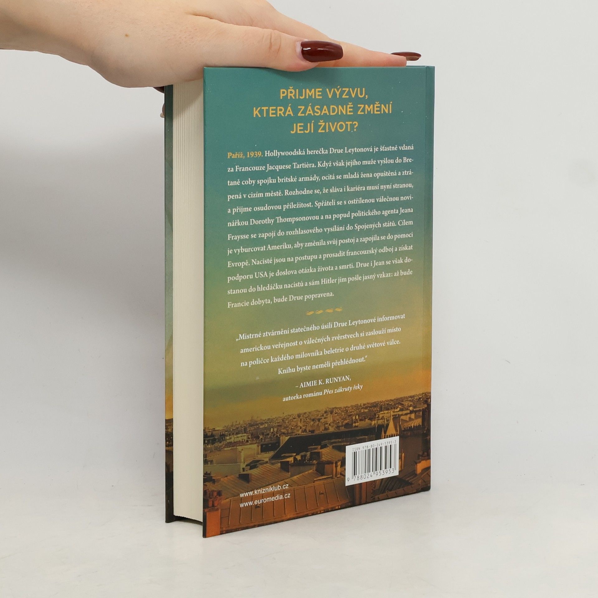Paříž, 1939. Hollywoodská herečka Drue Leytonová je šťastně vdaná za Francouze Jacquese Tartiera. Když však jejího muže vyšlou do Bretaně coby spojku britské armády, ocitá se mladá žena opuštěná a ztrápená v cizím městě. Na svou slávu a kariéru teď nedosáhne, proto přijímá příležitost, která její život změní už navždy. Spřátelí se s ostřílenou válečnou novinářkou Dorothy Thompsonovou a na popud politického agenta Jeana Fraysse se zapojí do rozhlasového vysílání do Spojených států. Cílem je vyburcovat Ameriku z apatie a v době, kdy jsou nacisté na postupu, prosadit odboj a pomoc ze strany USA. Drue a Jean se však stanou podezřelými a sám Hitler jim pošle jasný vzkaz: až bude Francie dobyta, bude Drue popravena.