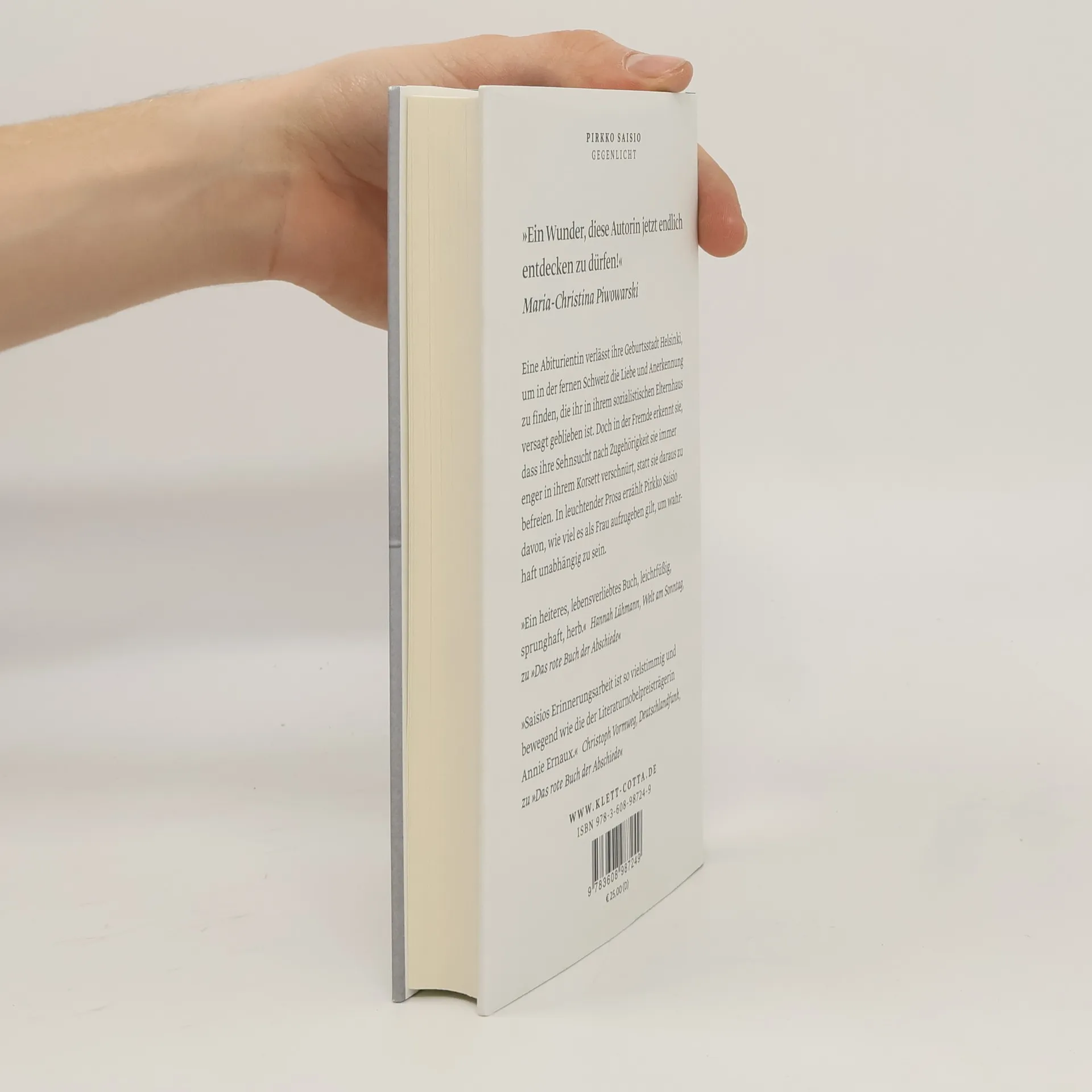 »Pirkko Saisio ist vermutlich die beste lebende Autorin Finnlands.« Aamulehti Eine Abiturientin verlässt ihre Geburtsstadt Helsinki, um in der fernen Schweiz die Liebe und Anerkennung zu finden, die ihr in ihrem sozialistischen Elternhaus versagt geblieben ist. Doch in der Fremde erkennt sie, dass ihre Sehnsucht nach Zugehörigkeit sie immer enger in ihrem Korsett verschnürt, statt sie daraus zu befreien. In leuchtender Prosa erzählt Pirkko Saisio davon, wie viel es als Frau aufzugeben gilt, um wahrhaft unabhängig zu sein. Es ist das Jahr 1968, als die Protagonistin mit neunzehn Jahren die Schule abschließt. Mit dem Vorsatz, die Enge ihres Elternhauses und ihrer Schulzeit in Helsinki hinter sich zu lassen, reist sie in die Schweiz – voller hochfliegender Träume und hungrig nach Liebe. Doch das kleine Land im Herzen Europas entpuppt sich nicht als das ersehnte Paradies, und das Waisenhaus, in dem sie arbeiten will, wirft sie zurück auf ihre Jugend in Finnland. Plötzlich ist sie wieder das sprachlose Kind aus dem Arbeitermilieu, das um jeden Preis von seinem Umfeld angenommen werden will, und doch nicht dazugehören kann. »Gegenlicht« ist ein brillantes Buch über das Erwachsenwerden. Die vielfach ausgezeichnete finnische Autorin Pirkko Saisio findet eine einzigartige Sprache für die Kraft und den Mut, den es braucht, um die Gesetze der Kindheit zu durchbrechen und die eigene Bestimmung zu finden.