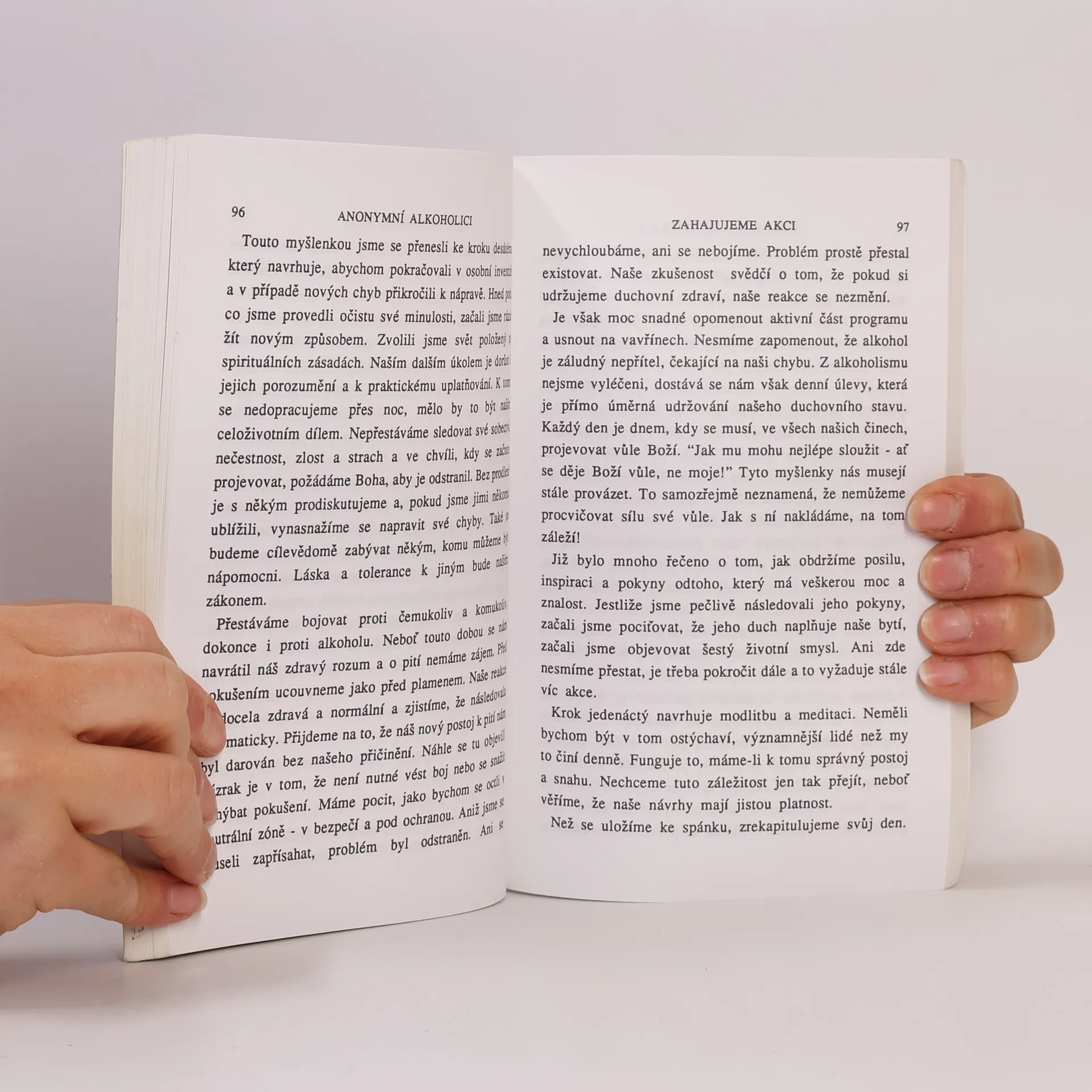 Překlad původního vydání textu z roku 1939 (4 roky poté,co bylo společenství AA založeno) nabízí jednoduchý i zajímavý,léty pravděpodobně i ověřený návod na léč- bu alkoholismu.Informuje o příčinách a podstatě alkoholismu,který je velmi závaž- nou chorobou,vysvětluje psychologii alkoholika a ukazuje,jak jednoduše AA pomáhá už léta šířit tyto informace po celém světě.Princip léčby spočívá v dodržování úplné abstinence,změně dosavadních návyků a přátel a podstatné motivaci pro nový život bez alkoholu.Zvláštní kapitoly jsou věnovány manželkám,dětem a zaměstnavate- lům alkoholiků.Kniha je doplněna životními osudy dvou zakládajících členů AA.