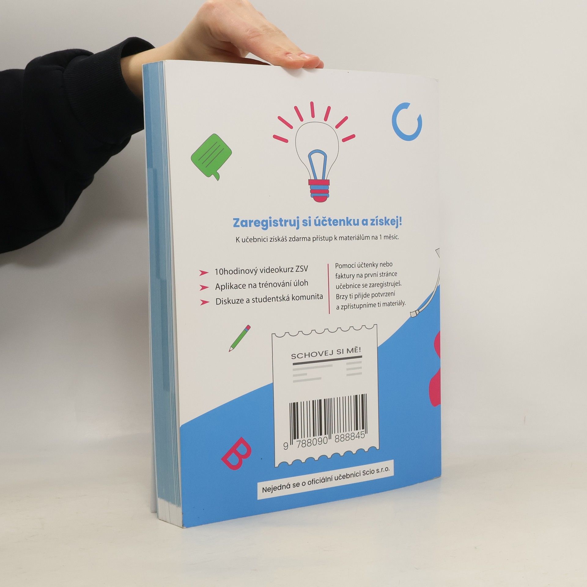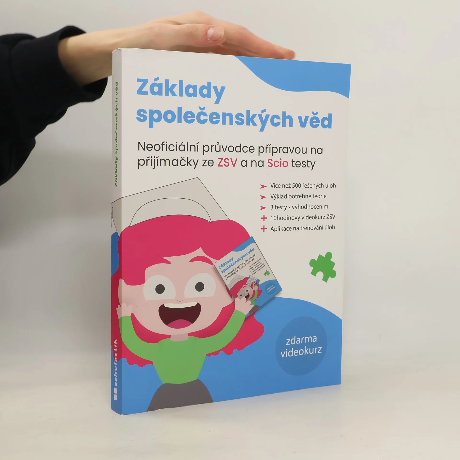 Učebnice tě připraví na přijímačky ZSV Scio s více než 500 řešenými úlohami a třemi testy s vyhodnocením. Obsahuje výklad teorie a aplikaci na trénování úloh, včetně 10hodinového videokurzu ZSV. Tento videokurz není oficiálním materiálem společnosti Scio s.r.o. K učebnici získáš zdarma videokurz Základů společenských věd, který ti pomůže při přípravě na přijímačky. Pro přístup nahraj doklad o koupi učebnice na https://oscio.cz/ucet/. Společně s lektorem projdeš základy teorie, což usnadní úspěšné složení zkoušek. Nahráním účtenky získáš také přístup k aplikaci na trénování úloh, která je dostupná pro Android, iOS a v internetovém prohlížeči. Obsahuje stovky úloh ze všech oddílů testu, přičemž jednotlivé kapitoly jsou doplněny přehlednou teorií. Přístup k aplikaci a videokurzu je zdarma na jeden měsíc. Učebnice se skládá z několika částí: první se zaměřuje na strukturu testů ZSV a strategie přípravy. Další část se věnuje oddílům testu, jako je psychologie, sociologie, politologie, právo, ekonomie a moderní dějiny. Každá kapitola obsahuje teoretický výklad a praktické úlohy. Poslední část publikace zahrnuje cvičné testy odpovídající přijímacím zkouškám. Aktualizace učebnice jsou dostupné na https://oscio.cz/aktualizace/. Hodně štěstí u přijímaček!
