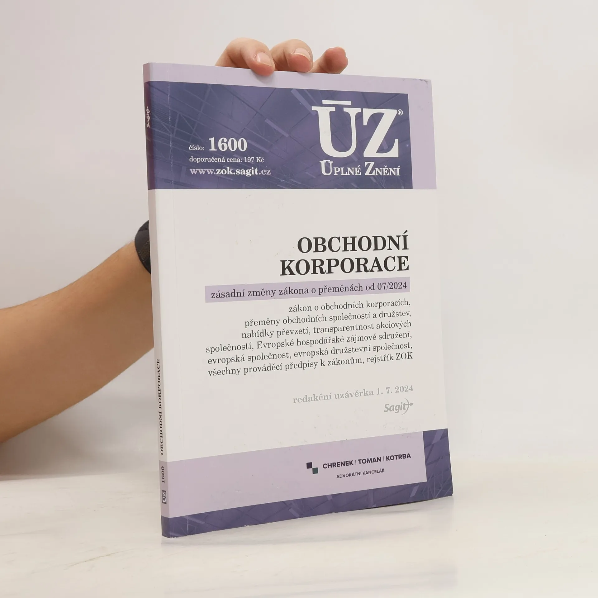 Od posledního vydání publikace došlo k zásadním změnám zákona o přeměnách obchodních společností a družstev a ke změnám zákona o obchodních korporacích, které nabývají účinnosti v červenci 2024. Dále zde najdete aktuální znění zákona o evropské společnosti, zákona o evropské družstevní společnosti, zákona o EHZS a příslušné prováděcí předpisy; součástí je rovněž rejstřík k zákonu o obchodních korporacích. Všechny změny předpisů jsou zvýrazněny tučně.
