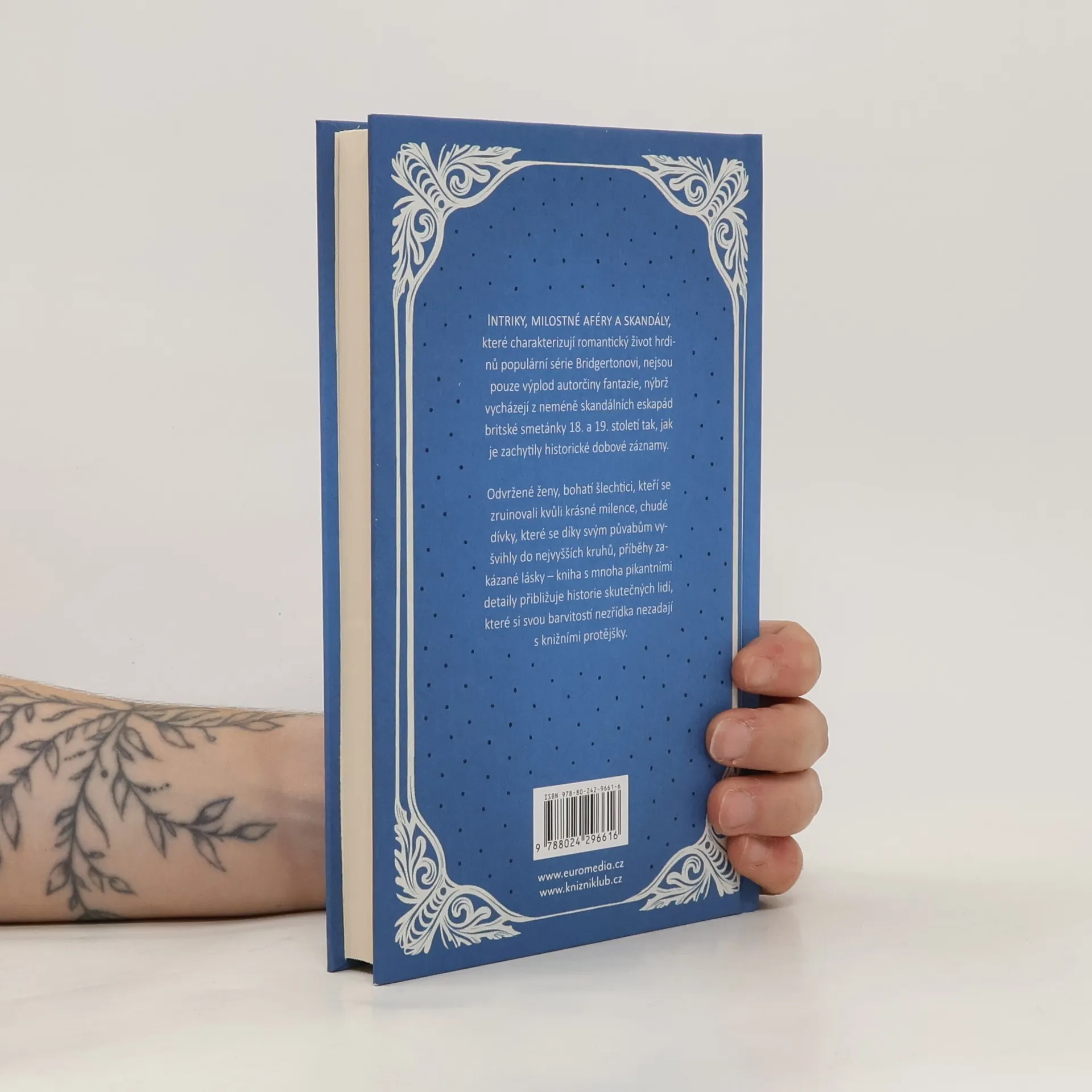 Intriky, milostné aféry a skandály, které charakterizují romantický život hrdinů populární série Bridgertonovi, nejsou pouze výplod autorčiny fantazie, nýbrž vycházejí z neméně skandálních eskapád britské smetánky 18. a 19. století tak, jak je zachytily historické dobové záznamy. Odvržené ženy, bohatí šlechtici, kteří se zruinovali kvůli krásné milence, chudé dívky, které se díky svým půvabům vyšvihly do nejvyšších kruhů, příběhy zakázané lásky – kniha s mnoha pikantními detaily přibližuje historie skutečných lidí, které si svou barvitostí nezřídka nezadají s knižními protějšky.