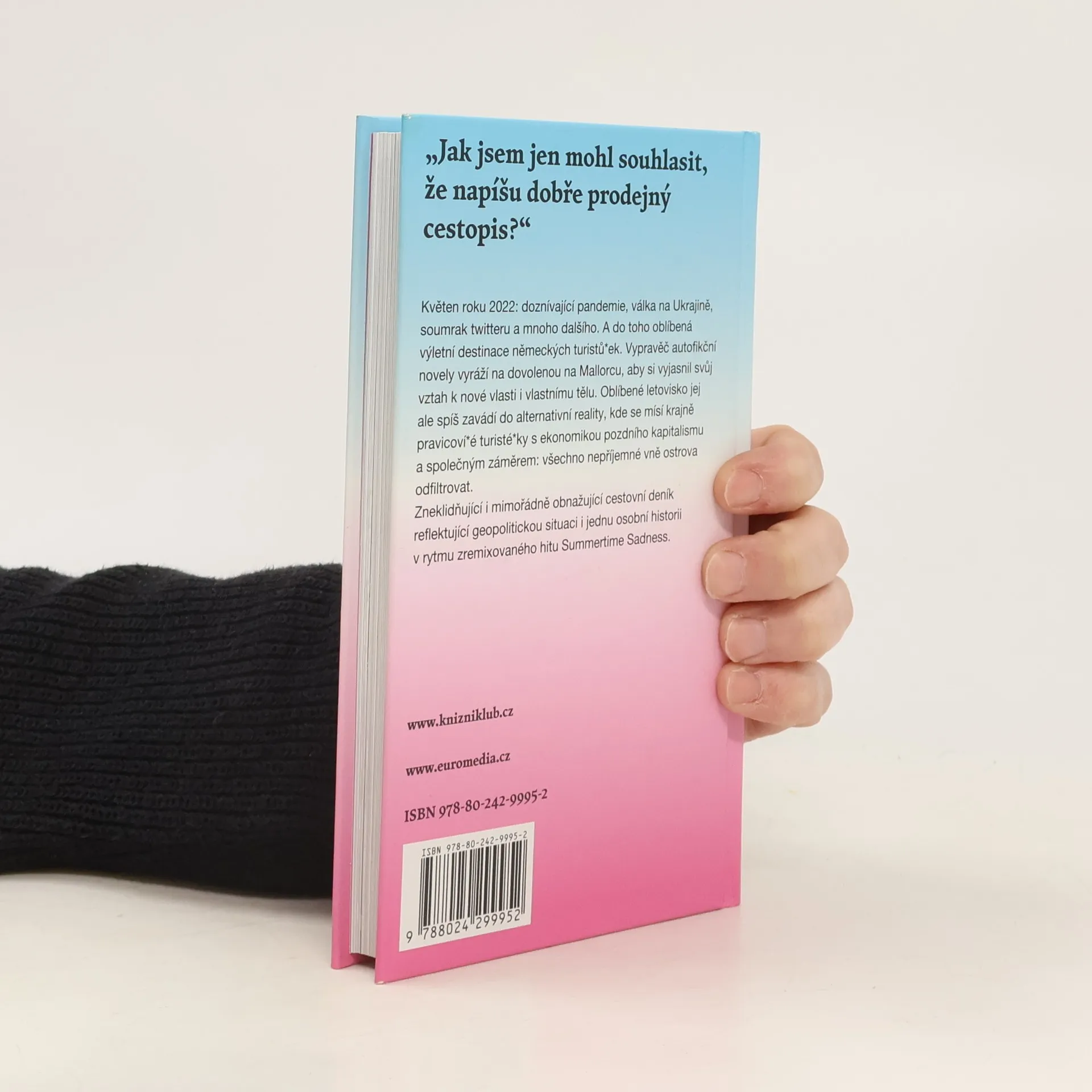 Květen roku 2022: Doznívající pandemie, válka na Ukrajině, soumrak Twitteru a mnoho dalšího. A do toho oblíbená výletní destinace německých turistů ek. Vypravěč autofikční novely vyráží na dovolenou na Mallorcu, aby si vyjasnil svůj vztah k nové vlasti i vlastnímu tělu. Oblíbené letovisko jej ale spíš zavádí do alternativní reality, kde se mísí krajně-pravicoví turisté ky s ekonomikou pozdního kapitalismu a společným záměrem: Všechno nepříjemné vně ostrova odfiltrovat. Zneklidňující i mimořádně obnažující cestovní deník reflektující geopolitickou situaci i jednu osobní historii v rytmu zremixovaného hitu Summertime Sadness.