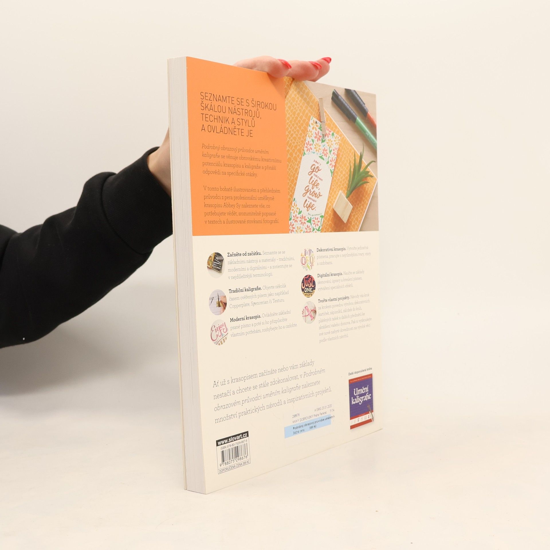 Písmena skvěle komunikují prostřednictvím slov a příběhů, které vyprávějí. Jejich nedílnou součástí je ale také vizuální podoba. Ať již se ve světě kaligrafie a krasopisu teprve rozkoukáváte, anebo se v něm již dobře orientujete, tato kniha bude inspirativním a užitečným pomocníkem ve vaší umělecké tvorbě. Protože existuje spousta nových věcí, které stojí za to se naučit. Naleznete zde i informace o nejrůznějších tradičních, moderních i digitálních nástrojích, učební vzory k procvičení jednotlivých abeced včetně jejich charakteristických vlastností a technik, i průvodce po klasické kaligrafii zaměřené na kurzívu.