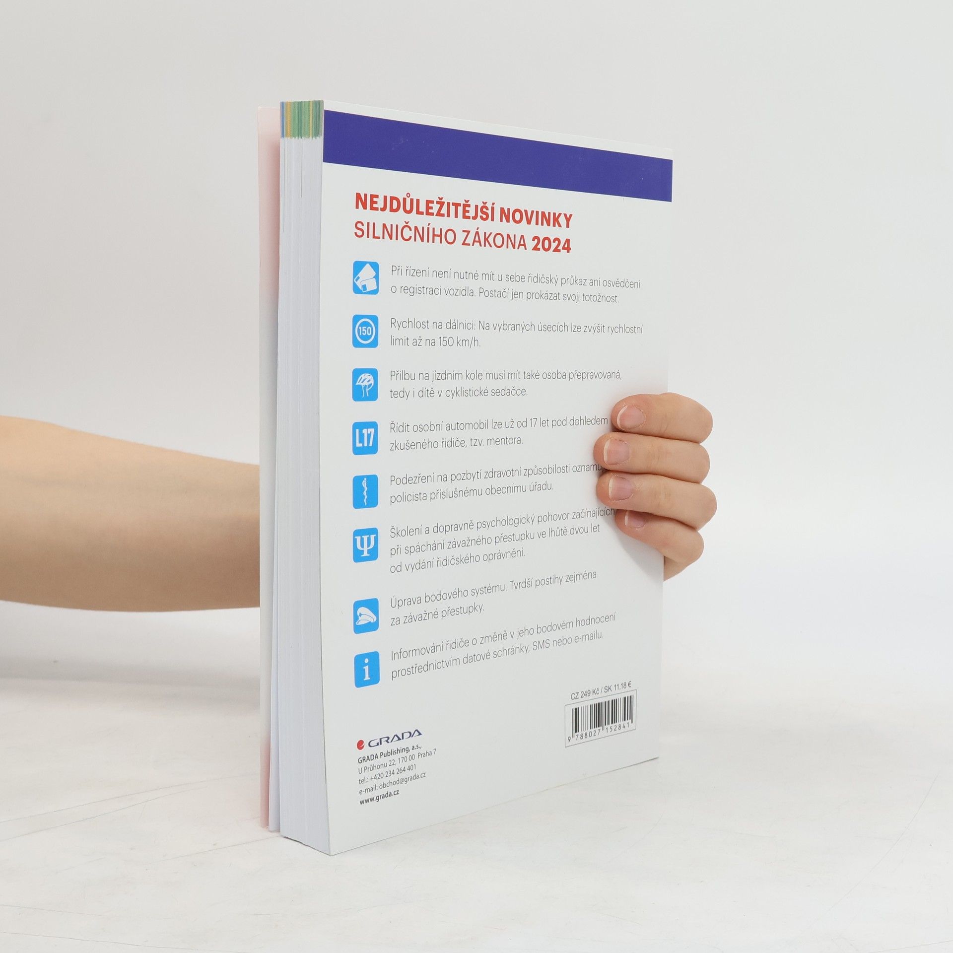 Velmi přehledná a bohatě ilustrovaná učebnice je určena pro žáky autoškol, kteří se potřebují naučit pravidla provozu na silničních komunikacích, nové dopravní značky i předpisy a otestovat své odborné znalosti prostřednictvím zkušebních testových otázek, včetně videootázek, které lze pomocí QR kódů spustit i v tištěné verzi. Kniha je nejpřehlednější a nejaktuálnější učebnicí na trhu.Nové vydání učebnice autoškoly obsahuje vše, co nezbytně potřebujete k získání řidičského oprávnění skupiny B: výklad pomocí názorných barevných fotografií, snadnou navigaci v knize pomocí hmatníků, kapitoly členěné podle předmětů v autoškole, ukázkové testy i praktické rady. Najdete zde všechna podstatná ustanovení zákona 361/2000 Sb. o provozu na pozemních komunikacích a souvisejících předpisů, výklad křižovatek včetně vysvětlení, informace o ovládání a údržbě vozidla, o bezpečné jízdě a zdravotnické přípravě. Cílem knihy je především pomoci čtenářům, aby se rychle a pohodlně naučili vše, co potřebují nejen k získání řidičského oprávnění, ale i k tomu, aby mohli jezdit po silnicích bezpečně a spolehlivě.