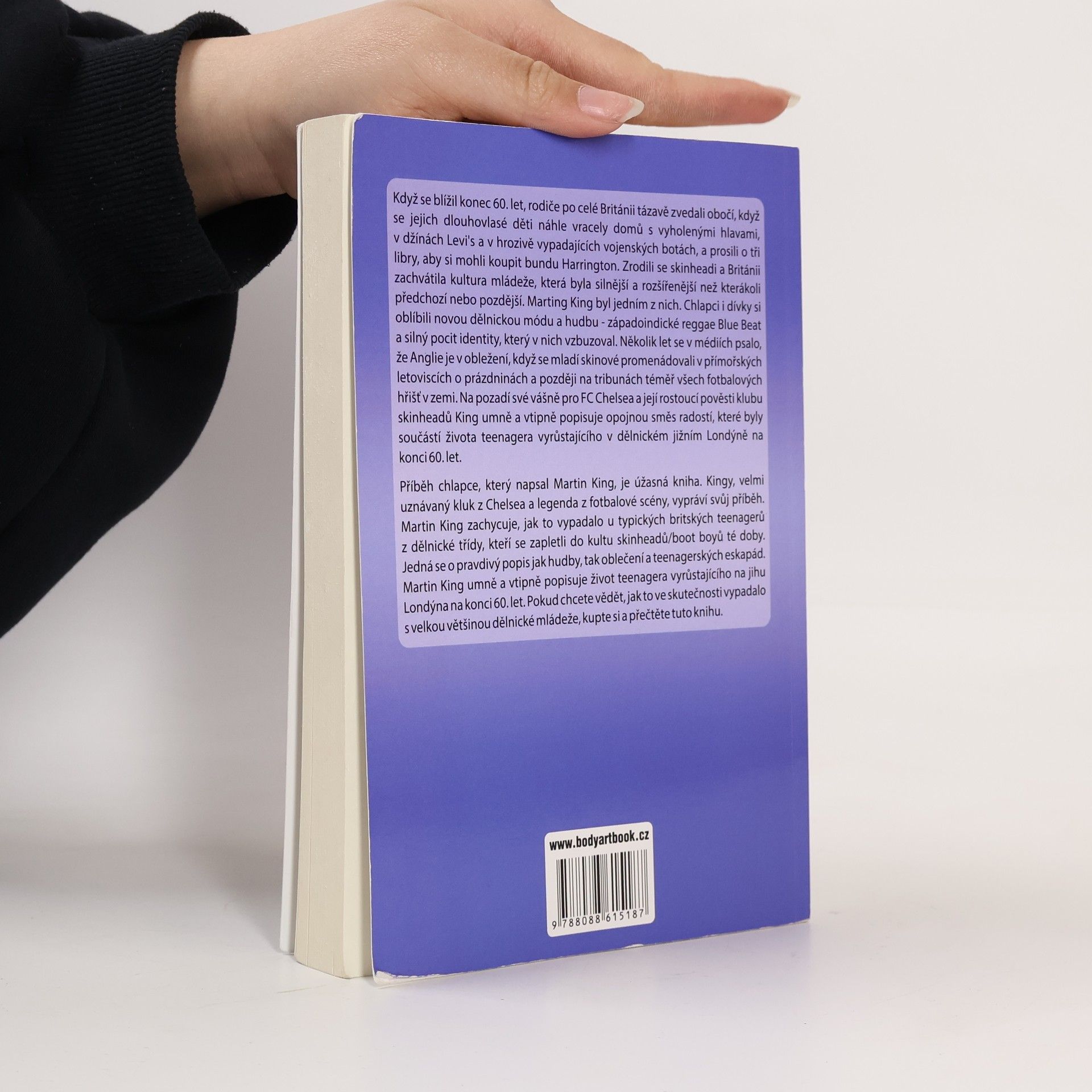 Na konci 60. let rodiče v Británii s údivem sledovali, jak se jejich dlouhovlasé děti vracejí domů s vyholenými hlavami, v džínách Levi's a vojenských botách, žádající o peníze na bundy Harrington. Zrodili se skinheadi a vznikla kultura mládeže, která neměla obdobu. Marting King, jeden z nich, popisuje, jak chlapci a dívky přijali novou dělnickou módu a hudbu, zejména západoindické reggae Blue Beat, a jak v nich tato kultura vyvolávala silný pocit identity. Média často psala o tom, jak Anglii zaplavili mladí skinheadi, kteří se promenádovali po plážích a navštěvovali fotbalové zápasy. King, fanoušek FC Chelsea, vtipně a živě zachycuje radosti života teenagera v dělnickém jižním Londýně. Jeho příběh je fascinující pohled na britské teenagery z dělnické třídy, kteří se zapletli do kultu skinheadů. King detailně popisuje hudbu, módu a teenagerské eskapády, což činí jeho vyprávění autentickým a poutavým. Pokud vás zajímá skutečný život dělnické mládeže té doby, tato kniha je pro vás.