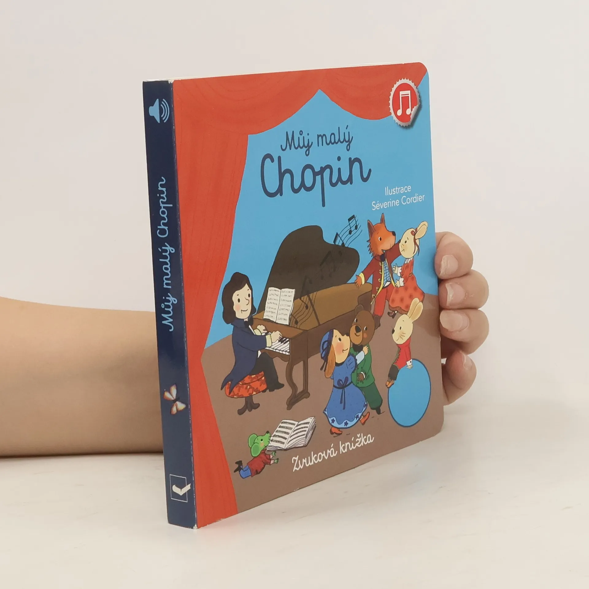 Stiskni tlačítko, poslechni si melodii a seznam se s Fryderykem Chopinem a jeho nejznámějšími skladbami. Fryderyk Chopin byl polským skladatelem klasické hudby a klavírním virtuosem. Tato knížka je určena dětem a představuje nejznámější Chopinovy klavírní skladby. Na každé dvoustraně je možné stisknout tlačítko a poslechnout si hudební pasáž, o níž se v knize právě píše, a přečíst si o ní krátké povídání. Kniha je tak skvělým interaktivním seznámením s tímto velikánem klasické hudby. Rozvíjí u dětí jejich obrazotvornost a schopnost soustředit se na poslech. Kniha obsahuje vyměnitelné knoflíkové baterie AG10. Prodejní cena zvukové knihy již obsahuje recyklační poplatky.