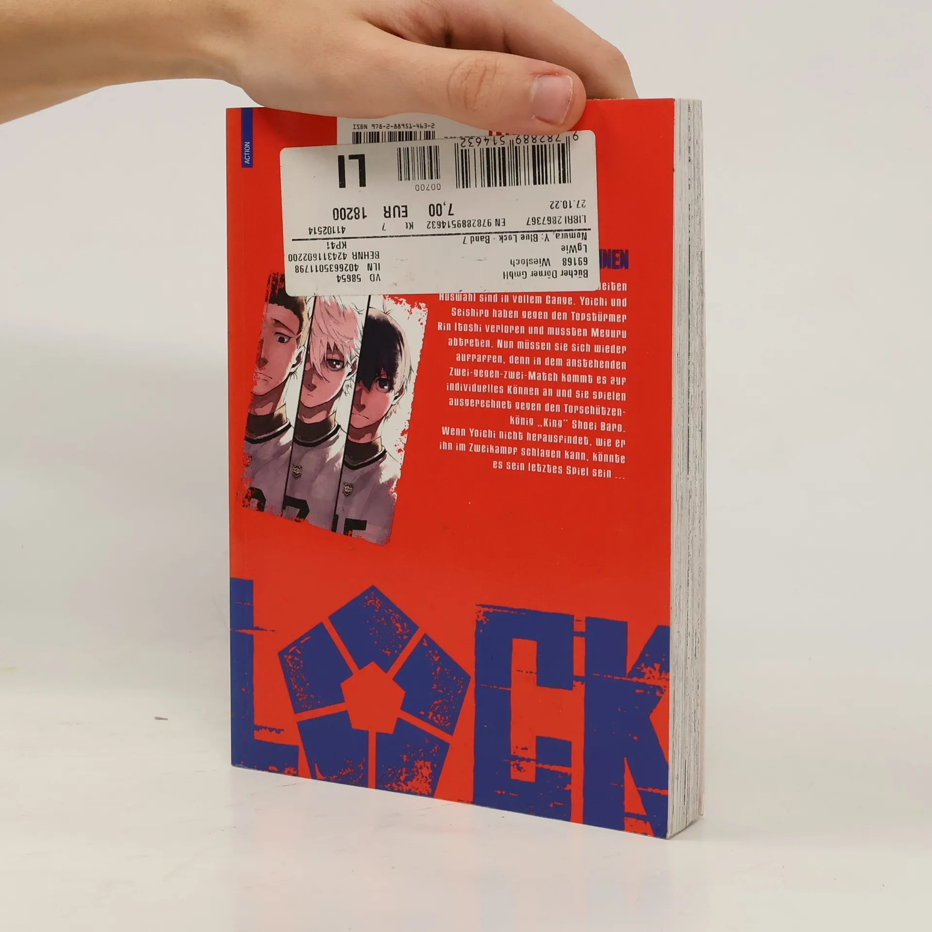 Die „Rivalenkämpfe“ der zweiten Auswahl sind in vollem Gange. Yoichi und Seishiro haben gegen den Topstürmer Rin Itoshi verloren und mussten Meguru abtreten. Nun müssen sie sich wieder aufraffen, denn in dem anstehenden Zwei-gegen-zwei-Match kommt es auf individuelles Können an und sie spielen ausgerechnet gegen den Torschützenkönig „King“ Shoei Baro. Wenn Yoichi nicht herausfindet, wie er ihn im Zweikampf schlagen kann, könnte es sein letztes Spiel sein …