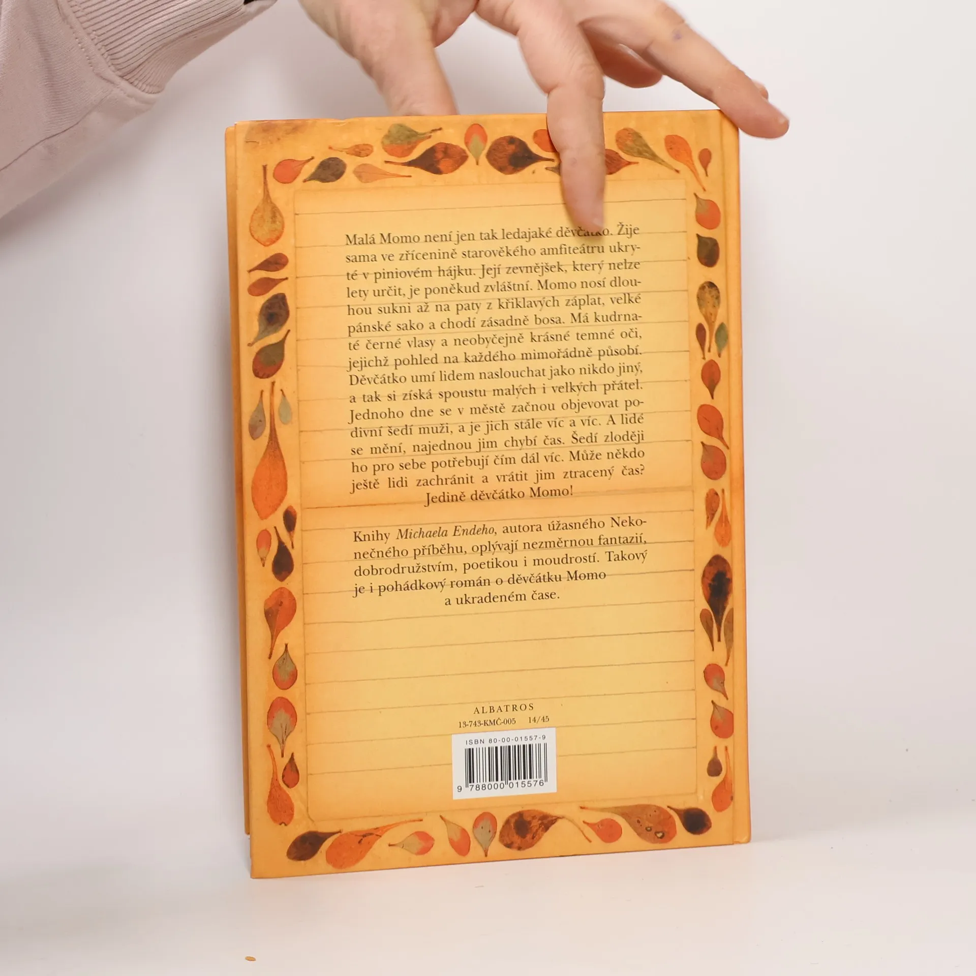 Podivuhodné vyprávění z pera autora světoznámého Nekonečného příběhu. Nevšední vyprávění o děvčátku Momo, které přemohlo zloděje času. Díky její veliké odvaze tak lidé opět nabyli ztracenou schopnost čas vnímat. Mimořádná kniha, plná poetiky a napětí, je psaná strhujícím jazykem a čtenáře zaujme už od prvních řádků. Stejně jako i u dalších knih Michaela Endeho (Nekonečný příběh) vstoupíme do světa podivuhodné fantazie.