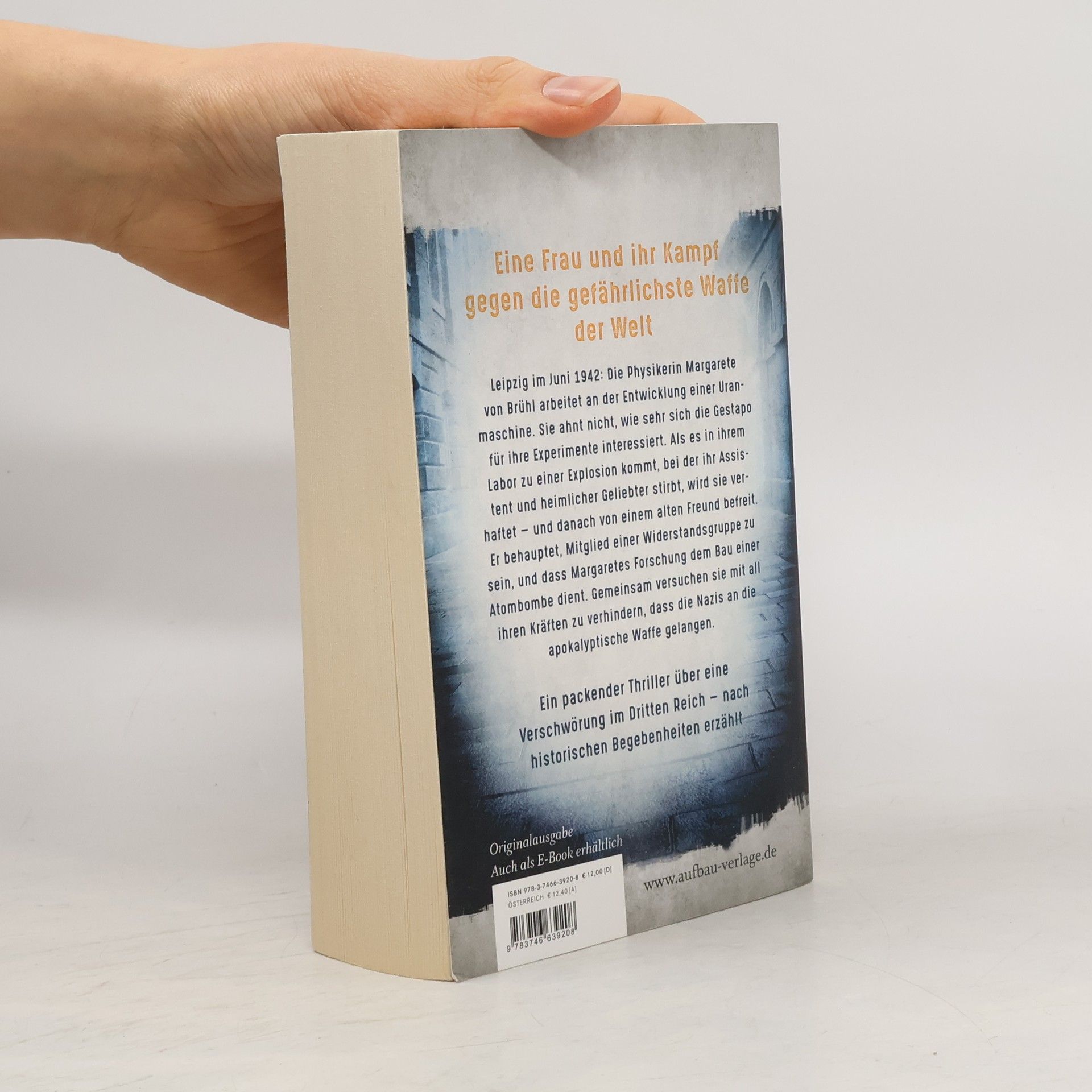 Eine Frau und ihr Kampf gegen die gefährlichste Waffe der Welt. Leipzig im Juni 1942: Die Physikerin Margarete von Brühl arbeitet an der Entwicklung einer Uranmaschine. Sie ahnt nicht, wie sehr sich die Gestapo für ihre Experimente interessiert. Als es in ihrem Labor zu einer Explosion kommt, bei der ihr Assistent und heimlicher Geliebter stirbt, wird sie verhaftet – und danach von einem alten Freund befreit. Er behauptet, Mitglied einer Widerstandsgruppe zu sein und dass Margaretes Forschung dem Bau einer Atombombe dient. Gemeinsam versuchen sie mit all ihren Kräften zu verhindern, dass die Nazis an die apokalyptische Waffe gelangen. Ein packender Thriller über eine Verschwörung im Dritten Reich – nach historischen Begebenheiten erzählt.