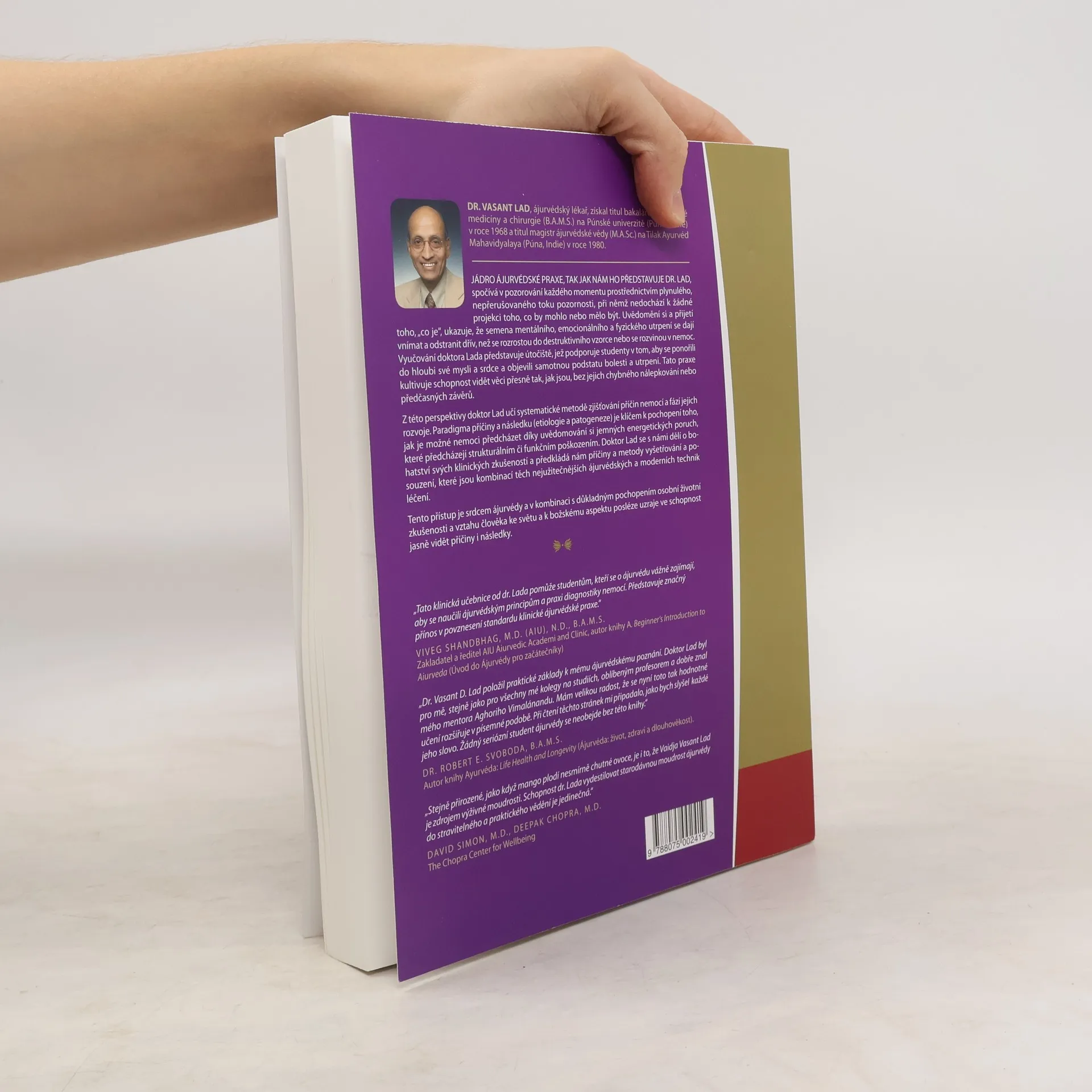 JÁDRO ÁJURVÉDSKÉ PRAXE, TAK JAK NÁM HO PŘEDSTAVUJE DR. LAD, spočívá v pozorování každého momentu prostřednictvím plynulého toku pozornosti, bez projekce toho, co by mělo být. Uvědomění si a přijetí "co je" umožňuje vnímat a odstranit semena mentálního, emocionálního a fyzického utrpení dříve, než se rozrostou do destruktivních vzorců nebo nemocí. Učení doktora Lada podporuje studenty v hlubokém zkoumání své mysli a srdce, aby objevili podstatu bolesti a utrpení. Tato praxe kultivuje schopnost vidět věci tak, jak jsou, bez chybného nálepkování či předčasných závěrů. Doktor Lad učí systematickou metodu zjišťování příčin nemocí a jejich vývoje. Paradigmata příčiny a následku (etiologie a patogeneze) jsou klíčem k pochopení prevence nemocí prostřednictvím uvědomění si jemných energetických poruch, které předcházejí strukturálním či funkčním poškozením. Sdílí s námi bohatství svých klinických zkušeností a předkládá příčiny a metody vyšetřování a posouzení, kombinující ájurvédské a moderní techniky léčení. Tento přístup je srdcem ájurvédy a v kombinaci s důkladným pochopením osobní životní zkušenosti a vztahu člověka k světu a božskému aspektu vede k jasnému vidění příčin a následků.