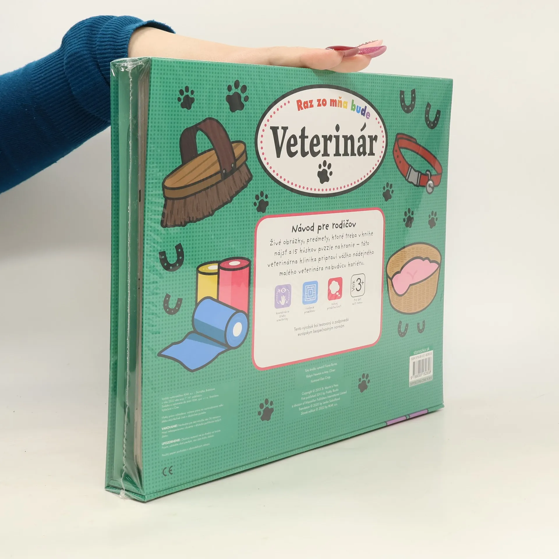 Už vieš, čím chceš byť, keď vyrastieš? Pomoc človeka potrebujú aj zvieratká, hoci to nevedia povedať. Ak teda máš rád zvieratká, začítaj sa do tejto veselej knižky. Zistíš, čo budeš pri svojej práci používať a akým spôsobom im môžeš pomôcť, keď z teba raz bude veterinár. Živé obrázky, predmety, ktoré treba v knihe nájsť a 15 kúskov puzzle na hranie – táto veterinárna klinika pripraví nádejného malého veterinára na budúcu kariéru. Okrem toho deťom pomôže pri: -koordinácii zraku a motoriky -riešení problémov -rozvoji predstavivosti Pre deti od 3 rokov Translation © 2020 by Lenka Sobolíková