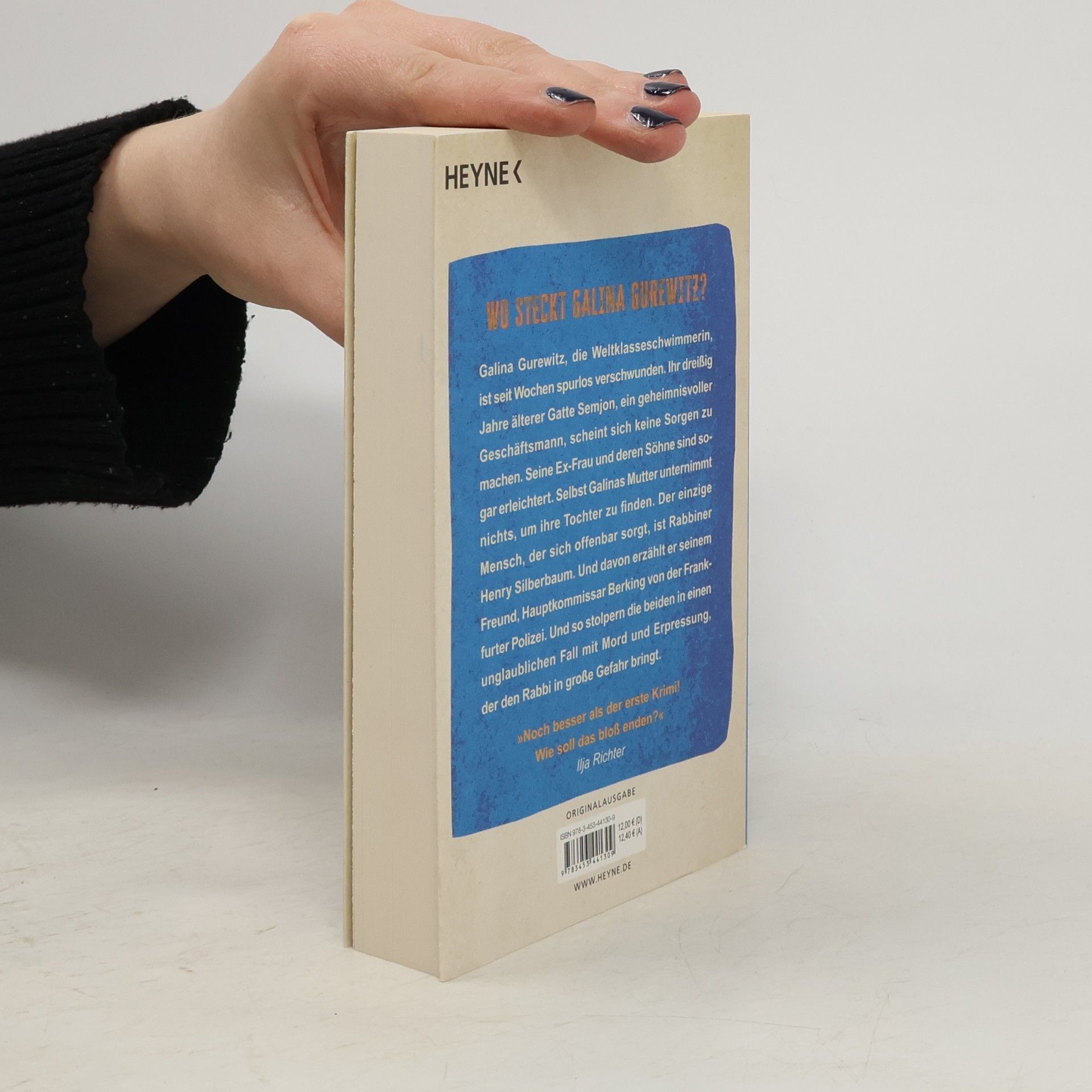 Wo steckt Galina Gurewitz? Galina Gurewitz ist verschwunden. Seit drei Wochen ist die Weltklasse-Schwimmerin wie vom Erdboden verschluckt. Dennoch weigert sich ihre Mutter standhaft, eine Vermisstenanzeige aufzugeben. Genau wie Galinas Gatte, der zum Jähzorn neigende Geschäftsmann Semjon Gurewitz. Werden sie womöglich erpresst? Kommissar Berking von der Frankfurter Polizei hat leider keine Handhabe für offizielle Ermittlungen. Aber er hat seinen Freund, den kriminalistisch begabten Rabbi Henry Silberbaum, der sich einfach mal ganz informell in der russisch-jüdischen Gemeinde umhört. Dabei kommt er einer unglaublichen Geschichte auf die Spur …