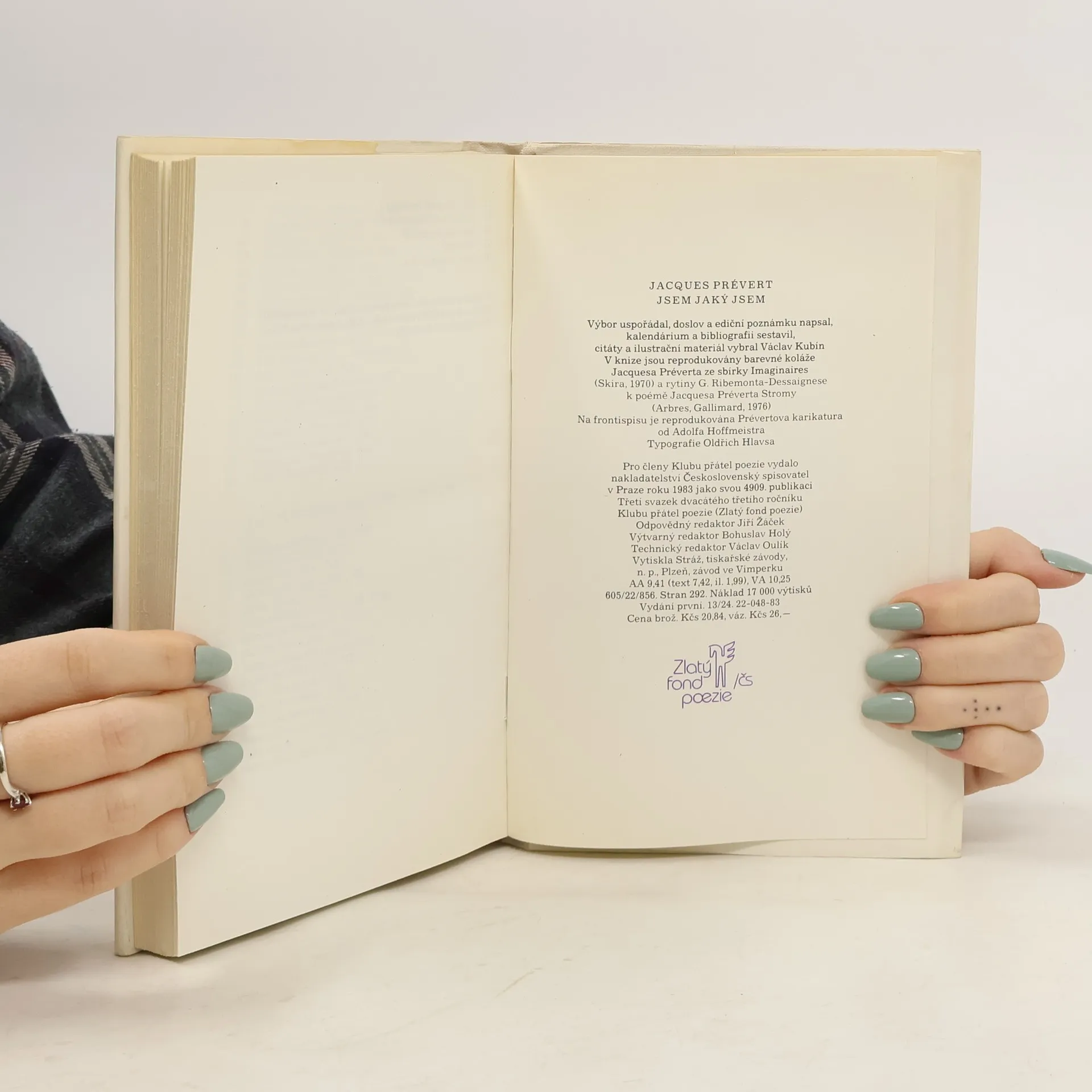 Výbor z celoživotního díla J. Préverta zachycuje v průřezu bohatou žánrovou rozmanitost jeho tvorby. Svazek přináší nejen básně, ale i slovesné hříčky, aforismy, hříčky divadelní, satirické prózy a bajky. Publikace je doplněna studií o básníkově životě a významu, životopisným přehledem a bibliografií.