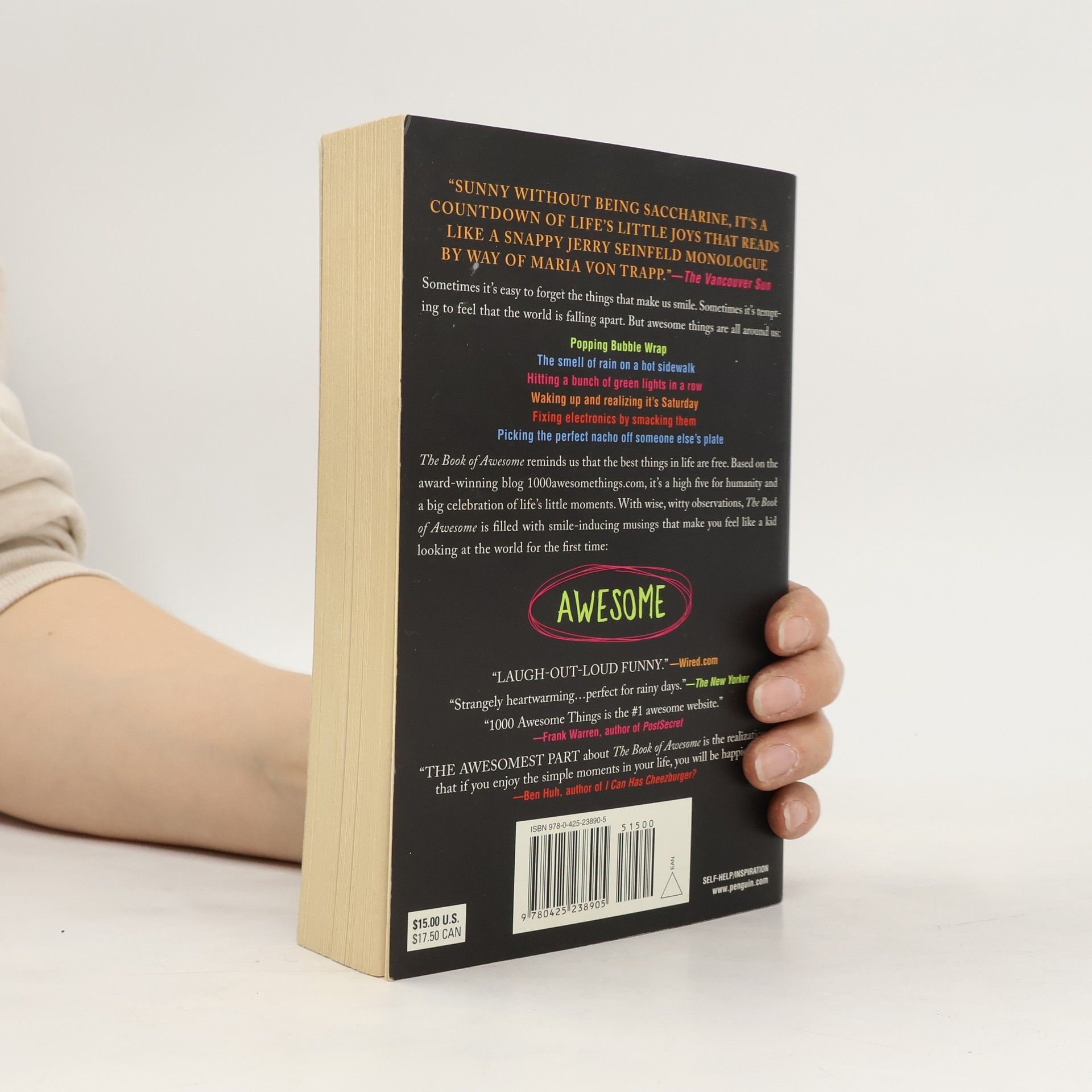 Based on the award-winning 10-million-plus-hit blog 1000 Awesome Things, The Book of Awesome is an international bestselling high five for humanity and a big celebration of life’s little moments. Sometimes it’s easy to forget the things that make us smile. With a 24/7 news cycle reporting that the polar ice caps are melting, hurricanes are swirling in the seas, wars are heating up around the world, and the job market is in a deep freeze, it’s tempting to feel that the world is falling apart. But awesome things are all around us, like: • Popping Bubble Wrap • Wearing underwear just out of the dryer • Fixing electronics by smacking them • Getting called up to the dinner buffet first at a wedding • Watching The Price Is Right when you’re home sick • Hitting a bunch of green lights in a row • Waking up and realizing it’s Saturday The Book of Awesome reminds us that the best things in life are free (yes, your grandma was right). With laugh-out-loud observations from award-winning comedy writer Neil Pasricha, The Book of Awesome is filled with smile-inducing moments on every page that make you feel like a kid looking at the world for the first time. Read it and you’ll remember all the things there are to feel good about. A New York Times Bestseller • USA Today Bestseller • Globe and Mail Bestseller • Toronto Star Bestseller • Vancouver Sun Bestseller • Macleans Bestseller • Winner of the Forest of Reading Award