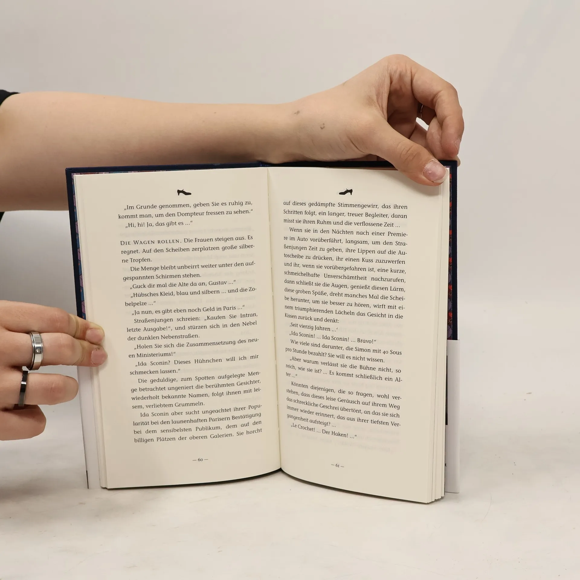 „Ida“ ist der Star, seit Jahrzehnten die erfolgreichste Revuetänzerin in Paris. Doch wie lange kann sie sich noch die Konkurrenz vom Leibe halten? In der zweiten Erzählung dieses Buchs, „Im Rausch des Weins“, erlebt Hjalmar, der bäuerliche Milizsoldat, in einer einsamen Villa mit Aïno, der schüchternen, hochmütigen Bürgerfrau, den Beginn einer erotisch-zärtlichen Nacht. Die Situation, wirklichkeitsnah und behutsam erzählt, ergreift uns Leser, wir möchten den Verliebten Glück wünschen. „Idas“ Zeit verrinnt. Niemand steigt zweimal in denselben Fluss. Uhren unterstreichen den ständigen Wandel: Sie heiratet Marc, einen kleinen, maghrebinischen Uhrmacher; ihre Liebe, der Tod ihres Kindes, beides wird vom Pendelschlag unzähliger Uhren begleitet. Ida ist eine äußerst erfolg- reiche Tänzerin in Paris, niemand kann ihr das Wasser reichen. Wird sie mit über 60 Jahren ihrer Rolle immer noch gerecht? „Im Rausch des Weins“ erzählt davon, wie sich die Hauptpersonen unerwartet einer aufgewiegelten Menge gegenübersehen. Was kann der Wein des geplünderten Palastes in einem finnischen Dorf anrichten? Die französischsprachige Autorin verstarb 1942 im KZ. Ihr bekanntester Roman wurde erst in den 1990er Jahren entdeckt.