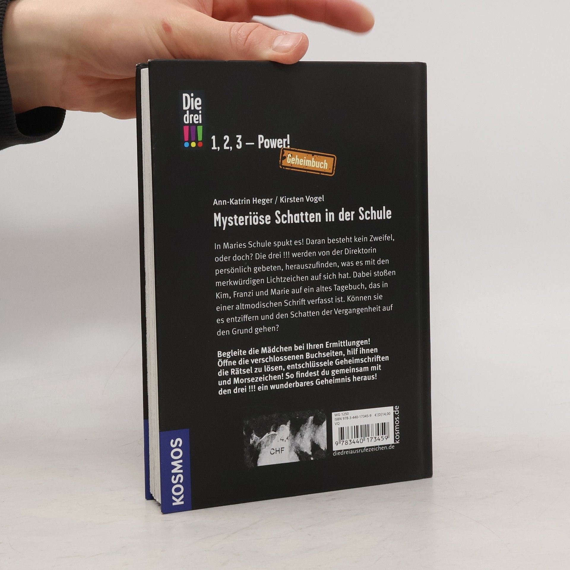 Kim, Franzi und Marie sind „Die drei !!!“. Mutig und clever ermitteln die drei Detektivinnen und sind jedem Fall gewachsen – diesmal mit Hilfe der Leserin: Der Sonderband mit verschlossenen Seiten und Geheimcode-Scheibe zur Lösung des Falls. An Maries Schule treiben unheimliche Schatten ihr Unwesen. Die drei Freundinnen nehmen die Ermittlungen auf und stoßen auf eine seltsame Geschichte über einen mysteriösen Schatz. Ein altes Tagebuch scheint der Schlüssel zu diesem Fall zu sein, doch es steckt voller Geheimcodes. Jetzt heißt es für die Fans: mitmachen und Rätsel knacken!