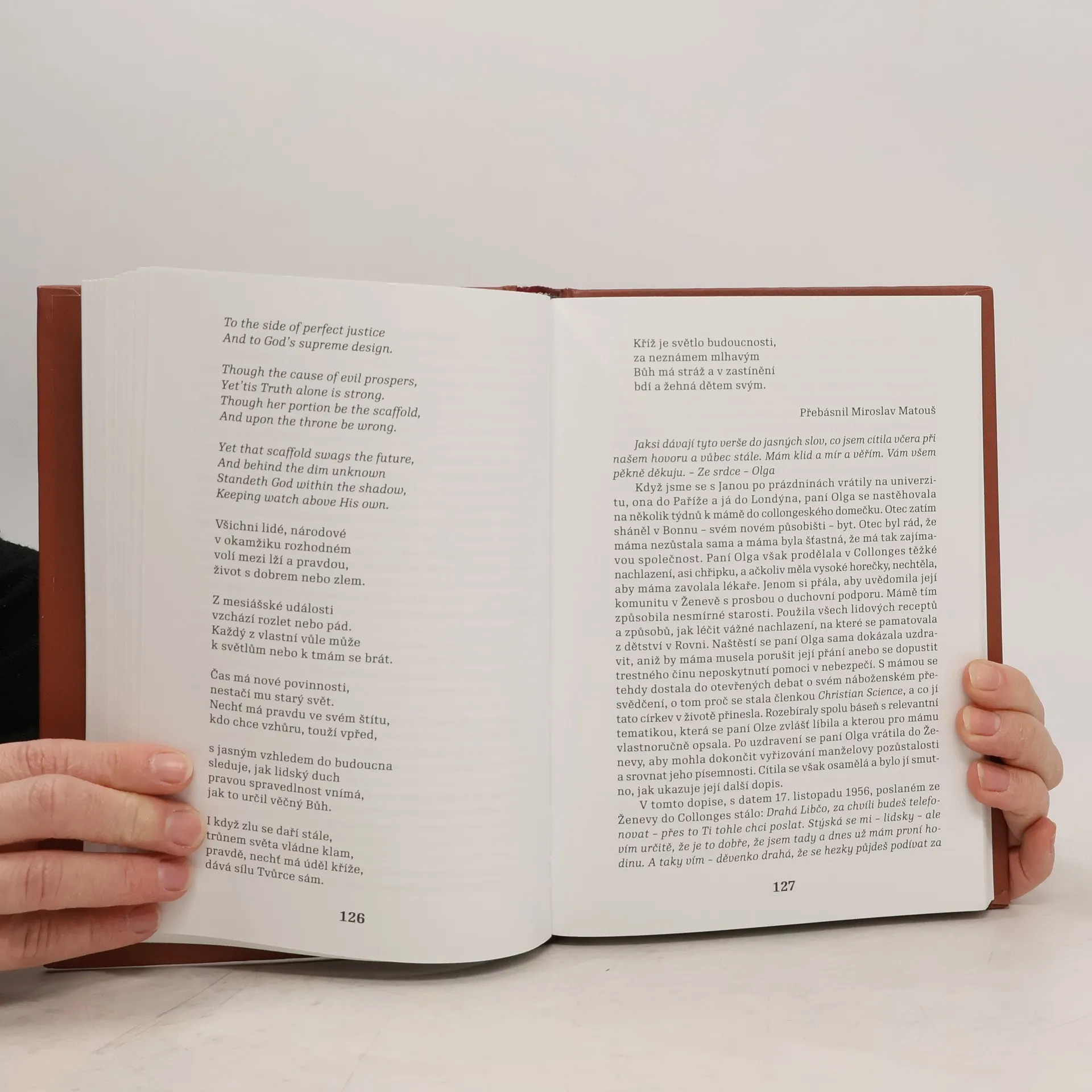 O životě nejmladší dcery prvního prezidenta, Olgy Masarykové (1891–1978), se u nás příliš neví, neboť většinu svého života strávila v cizině. Do exilu odešla se svým otcem v prosinci 1914 a po krátké návštěvě vlasti po vyhlášení samostatného státu se vrátila do Švýcarska, kde se vdala za lékaře Henri Revillioda. Na počátku druhé světové války, kdy hrozilo obsazení Švýcarska nacisty, odjela s syny Herbertem (*1921) a Leonardem (*1922) do Velké Británie. Odtud se již nevrátili; Leonard zahynul při hlídkovém letu v roce 1944 a Herbert zemřel v roce 1945 na infekční nemoc. Po válce Olga Československo několikrát navštívila, ale po smrti bratra Jana se do vlasti již nevrátila. Její vnučka Libuše Paukertová-Leharová, která měla s Olgou písemný styk až do konce jejího života, se setkávala i s přítelkyní její matky, Olgou Masarykovou-Revilliodovou. Osud Olgy, jako všech Masarykových dětí, byl těžký a složitý. Kniha L. Paukertové–Leharové citlivě zachycuje její životní peripetie a duchovní svět, přinášející poutavé svědectví o osudech této výjimečné ženy. – Předmluva Petr Pithart.