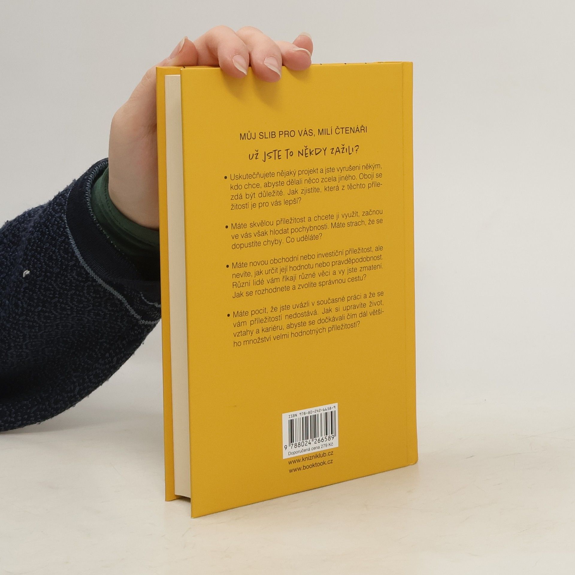 Velmi známý kouč a investor Eben Pagan strávil stovky hodin studováním fenoménu „příležitosti“. Po tom, co vyslechl velký počet milionářů a businessmanů, přišel na to, že úspěšní lidé mají něco společného, je to jejich talent rozpoznat, kde a jak se chopit té správné příležitosti, od níž se poté všechno odvíjí. To se vztahuje jak na pracovní, tak na rodinný či partnerský život. V dnešním internetovém světě je příležitostí až moc, pro obyčejného jedince je těžké se v toku informací a možností orientovat. Kde nemít strach a najít odvahu k činu, a kde naopak raději ustoupit, vás naučí tato kniha.