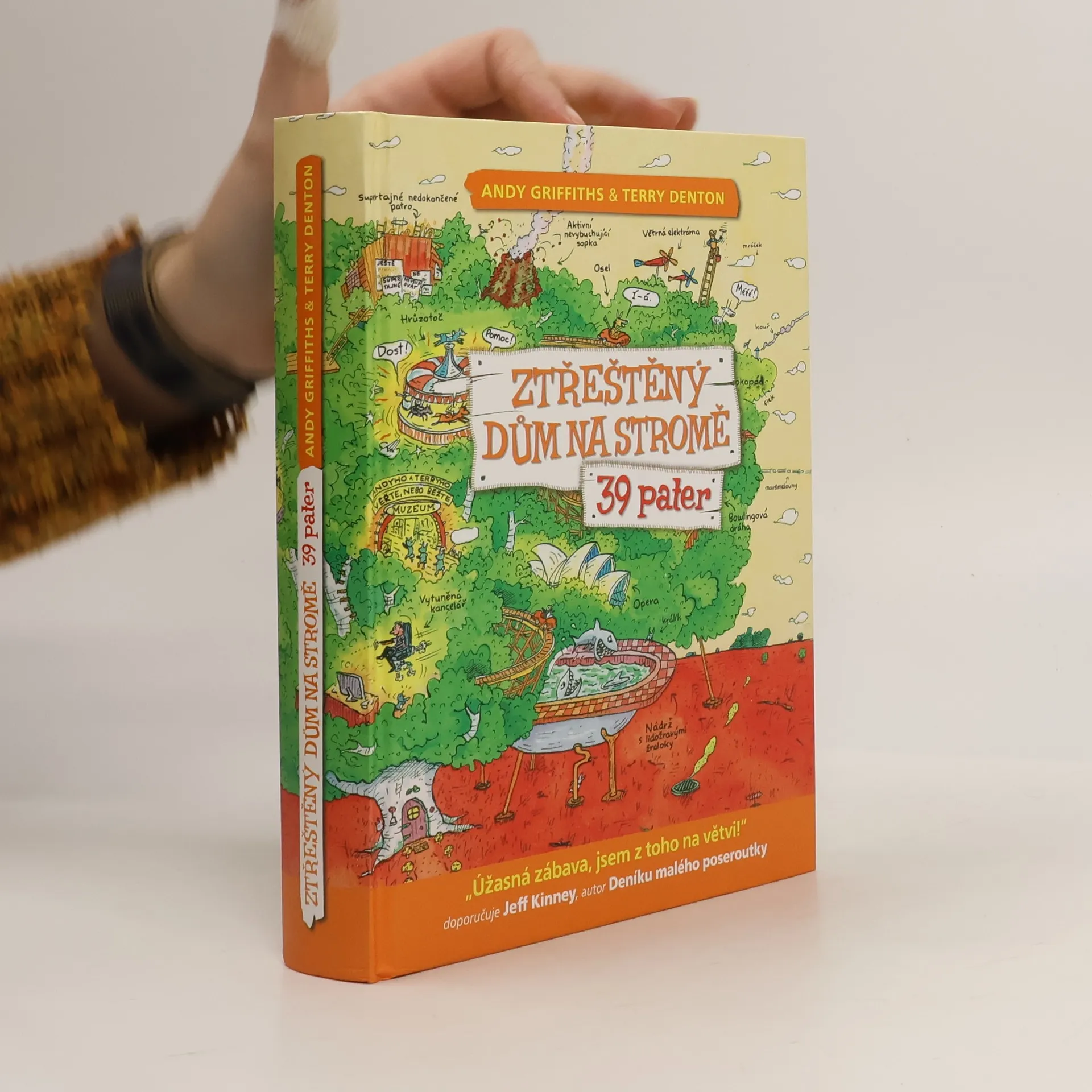 Pojďte se s námi podívat za Andym a Terrym do jejich nově rozšířeného devětatřicetipatrového domu na stromě! Čeká vás 13 zbrusu nových, akčních poschodí. Najdete tu například nejděsivější horskou dráhu na světě, operní dům, buldozerové bitevní pole, diskotéku se světelnou podlahou a obří disko-koulí, arénu s boxovacím slonem, který si říká Troubinátor, špičkově vybavenou kancelář s opakovacími poloautomatickými sešívačkami, laserovými gumami a katapultovacími kancelářskými křesly. Tak na co čekáte? Čtěte!