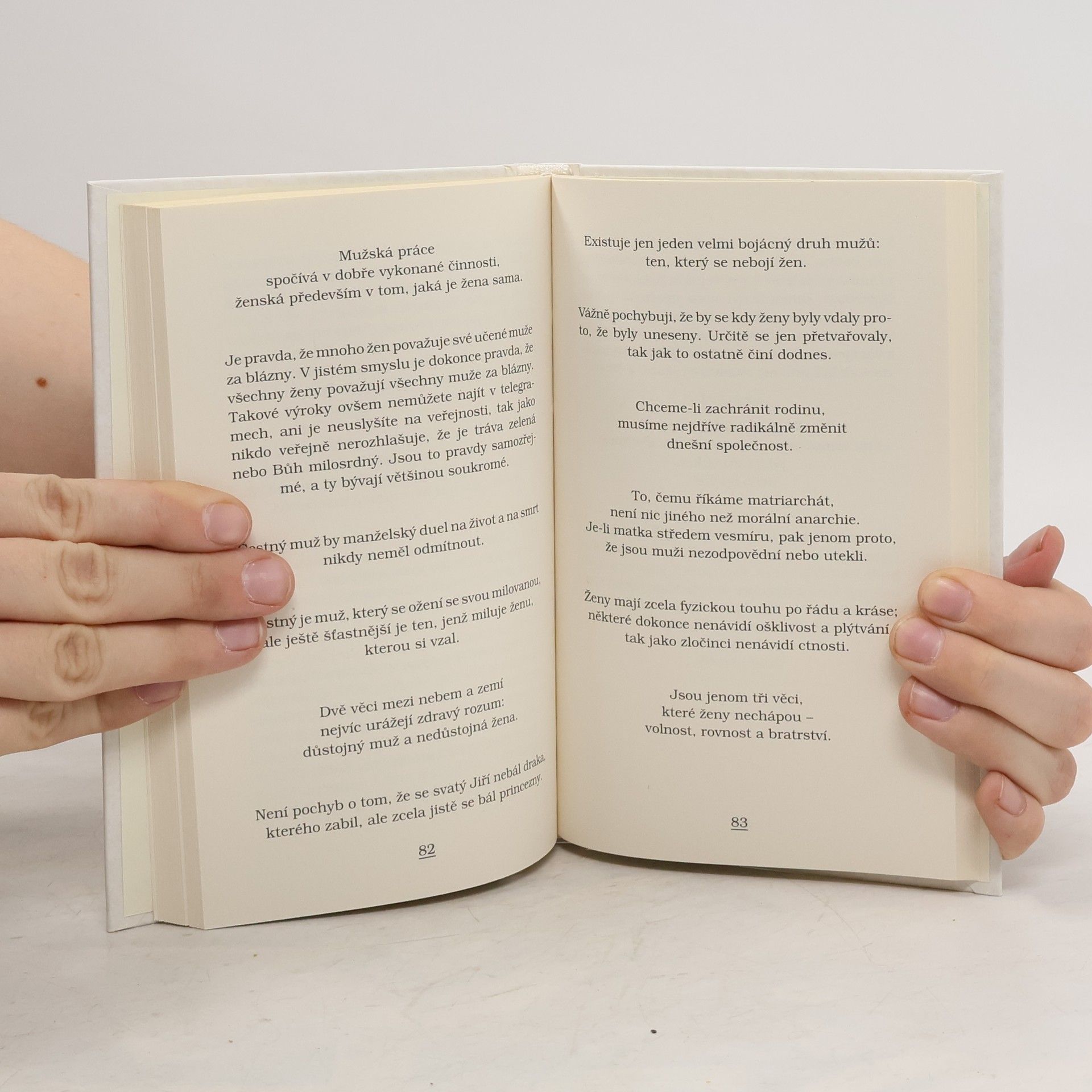 Gilbert Keith Chesterton se proslavil mnoha literárními žánry, ale hlavní důvod, proč stále patří k nejcitovanějším autorům světa, naleznete v této útlé knížce. Chesterton byl totiž mistrem paradoxu. Povýšil společenský bonmot na životní filosofii zdravého rozumu, na obranu občanské liberální politiky a tradičních hodnot evropské kultury. A ještě něco navíc: Chesterton je úvodem do světa tisíce malých překvapení a radostí ze života, proto byl tolik milován i těmi, kteří ne scela sdíleli jeho životní filosofii. U nás to byli především Ferdinand Peroutka, Karel Čapek, Jiří Voskovec, Jan Werich, Ivan Vyskočil a Jiří Suchý. Alexander Tomský vybral a přeložil téměř 450 úryvků z Chestertonova díla. Zhruba jedna třetina uvedených citátů pochází z knižních vydání novinových esejů a sloupků, napsaných před 1. světovou válkou. Druhá třetina pochází z novin a časopisů, které knižně nevyšly, hlavně z Illustrated London News a Daily News. Ostatní pocházejí z próz a monografií. 2. vydání.