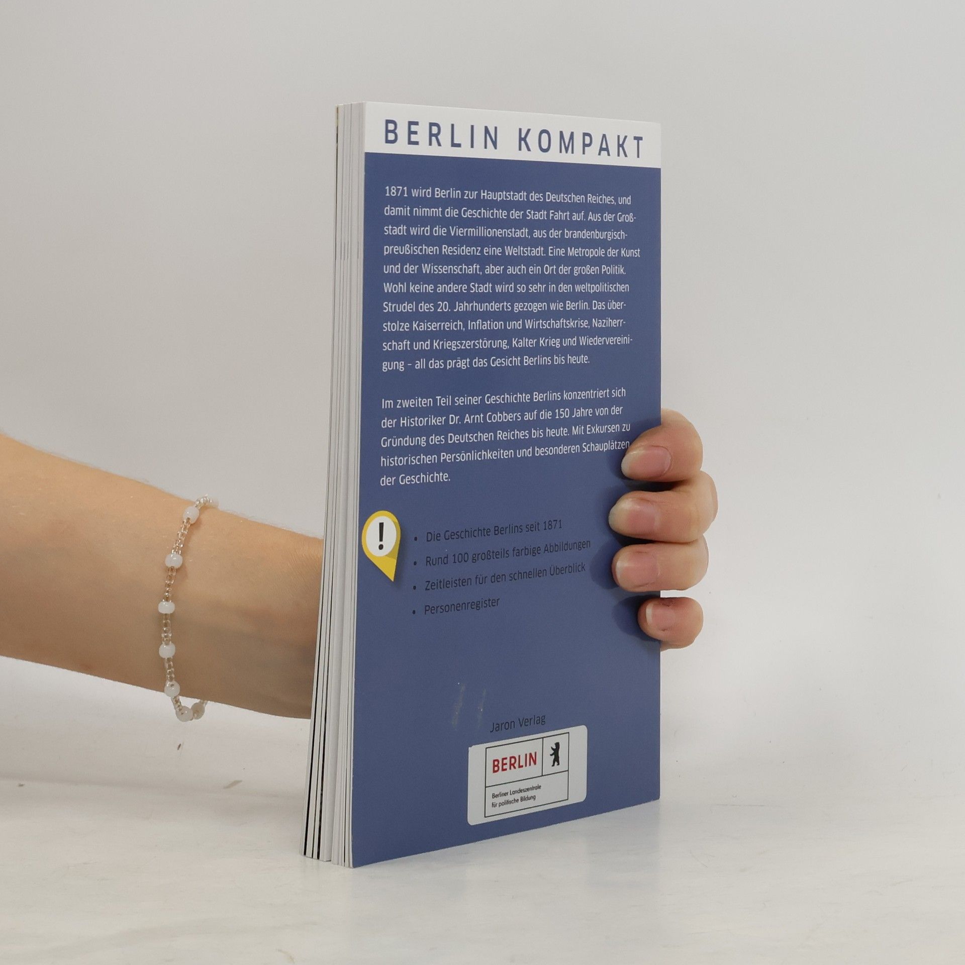 1871 wird Berlin zur Hauptstadt des Deutschen Reiches, und damit nimmt die Geschichte der Stadt in ungeahntem Maße Fahrt auf. Aus der Großstadt wird die Viermillionenstadt, aus der brandenburgisch-preußischen Residenz eine Weltstadt. Eine Metropole der Kunst und der Wissenschaft, aber auch ein Ort der großen Politik. Wohl keine andere Stadt wird so sehr in den weltpolitischen Strudel des 20. Jahrhunderts gezogen wie Berlin. Das überstolze Kaiserreich, Inflation und Wirtschafts- krise, Naziherrschaft und Kriegszerstörung, Kalter Krieg und Wiedervereinigung – all das prägt das Gesicht Berlins und er- klärt, warum die Stadt so aussieht und funktioniert, wie sie es heute tut. Wer fundiertes, aber kompaktes Wissen sucht, der ist mit diesem Buch bestens bedient, auch dank der Exkurse, Hin- tergrundgeschichten und zahlreichen historischen Abbil- dungen. Die „Berlin-Geschichte von der Reichsgründung bis heute“ basiert auf der „Kleinen Berlin-Geschichte“, die erstmals 2005 im Jaron Verlag erschien, und knüpft nahtlos an die „Ber- lin-Geschichte von den Anfängen bis zur Reichsgründung“ an, die im Frühjahr 2021 erschienen ist.