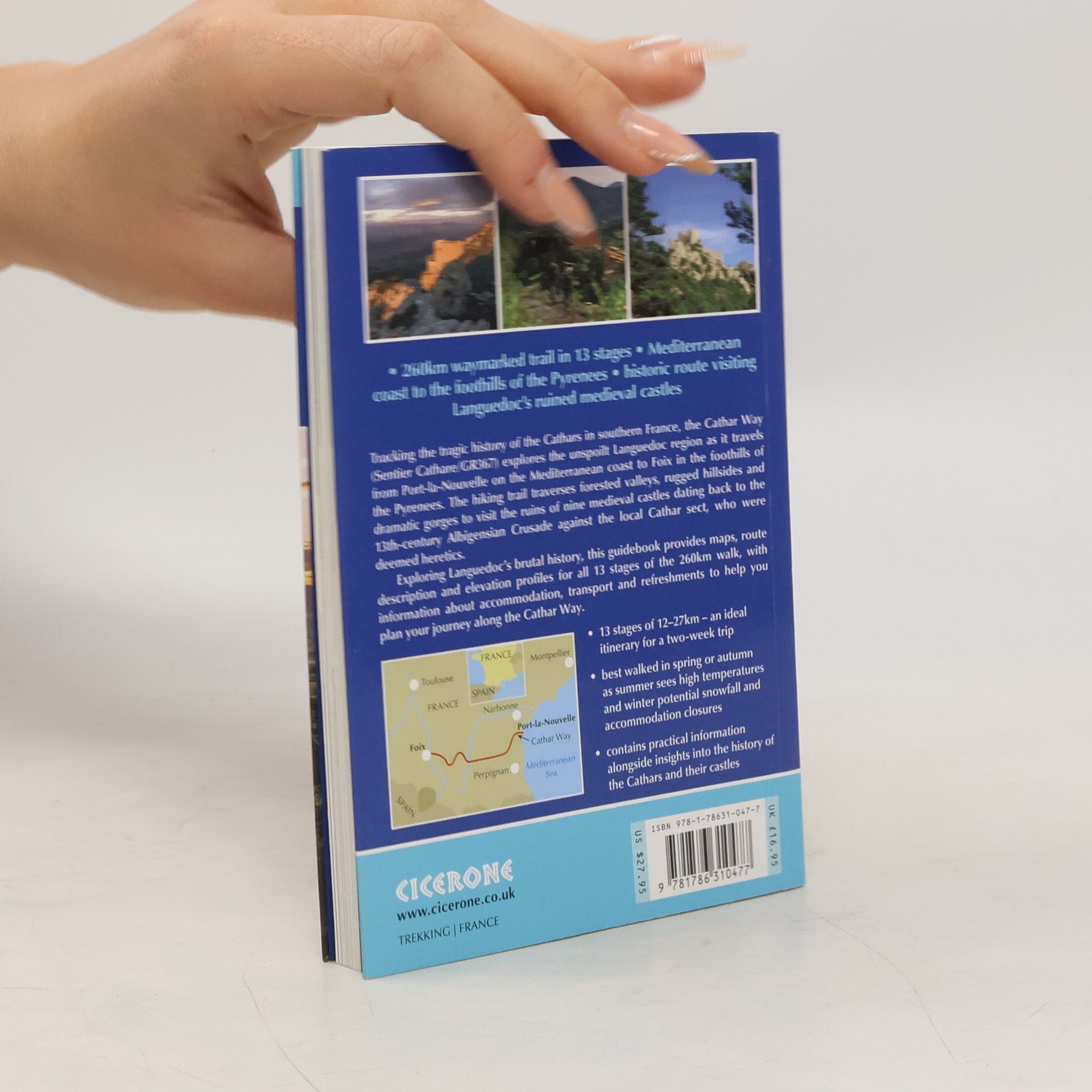 Guidebook to the GR367 Cathar Way (Sentier Cathare) in the Languedoc region of southern France. The 260km waymarked trail from Port la Nouvelle on the Mediterranean to Foix traces the history of the Cathars through the Eastern foothills of the Pyrenees. Split into 13 stages and offering a northern variant, the route takes about 2 weeks to complete.