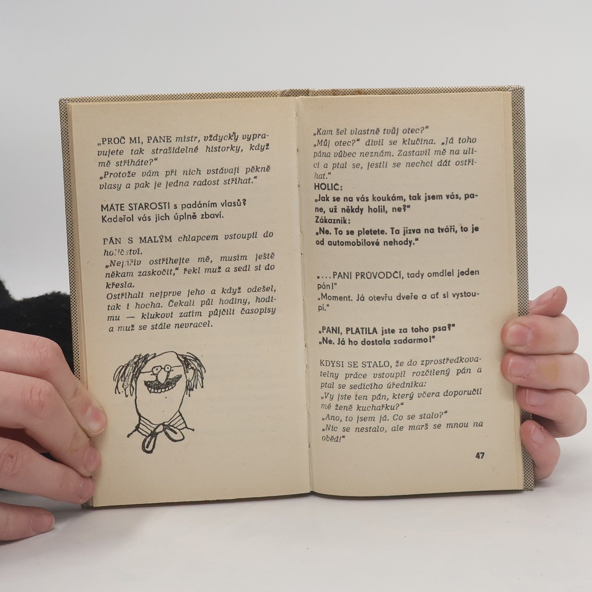 Veselé příběhy z prostředí obchodu, služeb, dopravy, z provozu restaurací, jídelen, vináren, ze situací v lékařských čekárnách a ordinacích, a to u nás i ve světě.