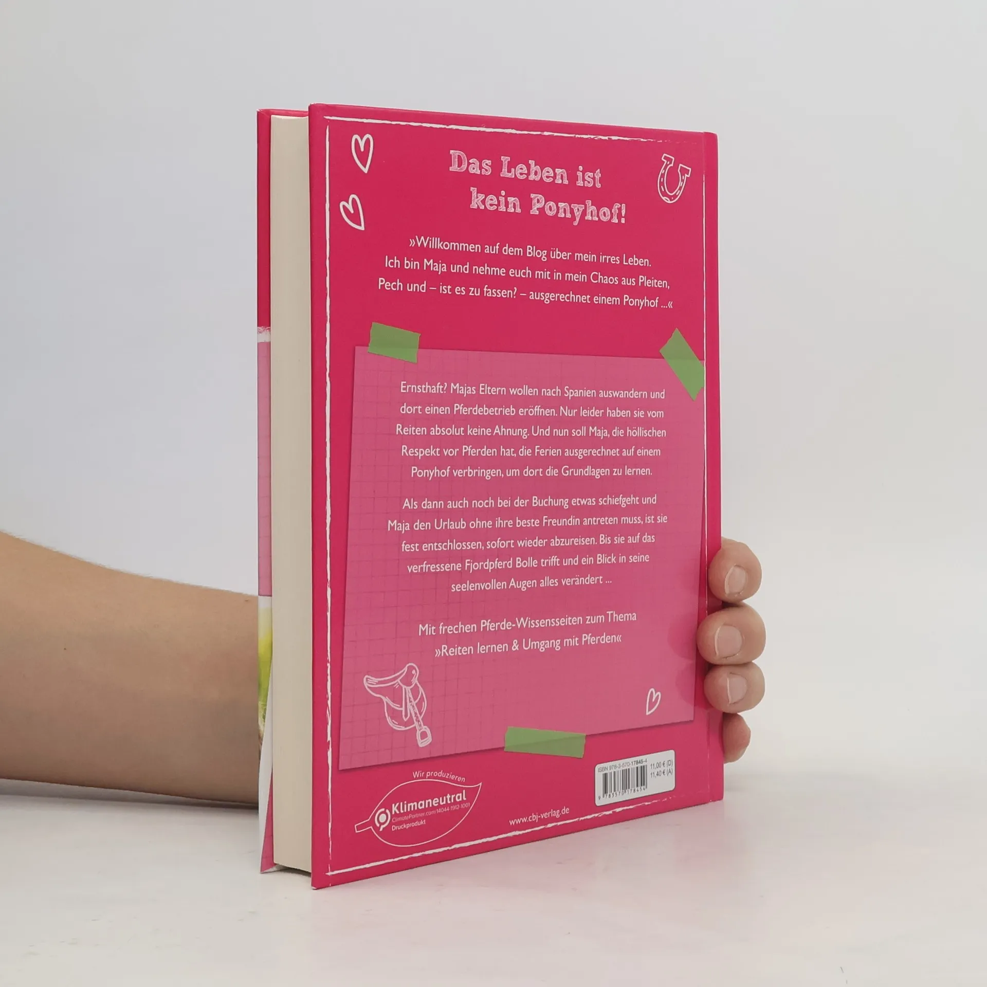 Das Leben ist kein Ponyhof! »Willkommen auf dem Blog über mein irres Leben. Ich bin Maja und nehme euch mit in mein Chaos aus Pleiten, Pech und – ist es zu fassen? – ausgerechnet einem Ponyhof ...« Ernsthaft? Majas Eltern wollen nach Spanien auswandern und dort einen Pferdebetrieb eröffnen. Nur leider haben sie vom Reiten absolut keine Ahnung. Und nun soll Maja, die höllischen Respekt vor Pferden hat, die Ferien ausgerechnet auf einem Ponyhof verbringen, um dort die Grundlagen zu lernen. Als dann auch noch bei der Buchung etwas schiefgeht und Maja den Urlaub ohne ihre beste Freundin antreten muss, ist sie fest entschlossen, sofort wieder abzureisen. Bis sie auf das verfressene Fjordpferd Bolle trifft und ein Blick in seine seelenvollen Augen alles verändert ... Mit frech illustrierten Pferde-Wissensseiten zum Thema »Reiten lernen & Umgang mit Pferden«. Alle verfügbaren Bände der Majas Sattel-Blog -Reihe: Majas Sattel-Blog – Alles Pony, oder was? (Band 1) Majas Sattel-Blog – Ich glaub, es wiehert! (Band 2) Ausstattung: Mit s/w Illustrationen